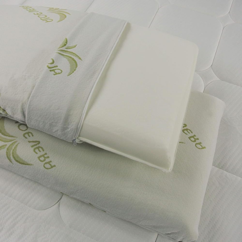 2 Cuscini memory foam saponetta per letto - Misura 70x40 cm e altezza di 11 cm - Guanciale con fodera Aloe Vera