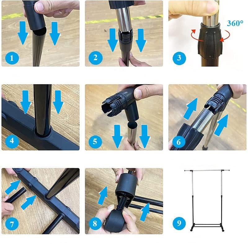 L’appendiabiti è molto facile da montare, nella confezione sono presenti le istruzioni di assemblaggio dettagliate e quando non si utilizza può essere facilmente smontato così da essere riposto ovunque lo desideri.