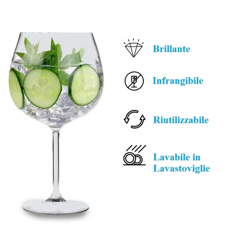 6 Bicchieri Ballon da Gin 580cc riutilizzabili in plastica trasparente per bevande e cocktail