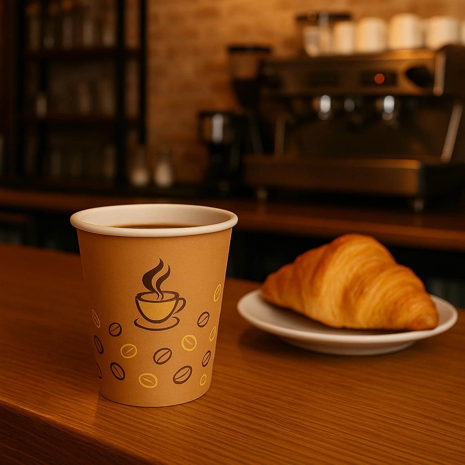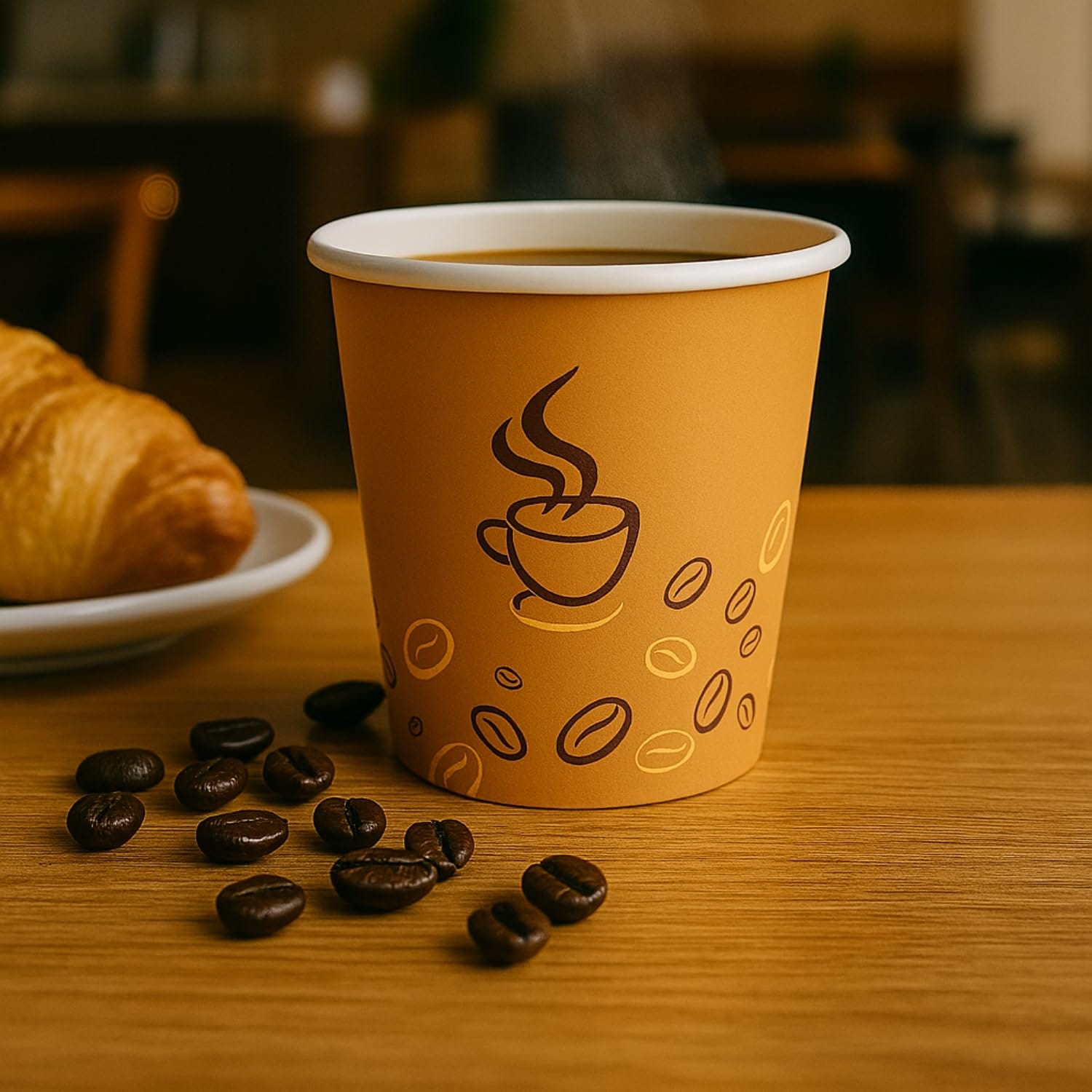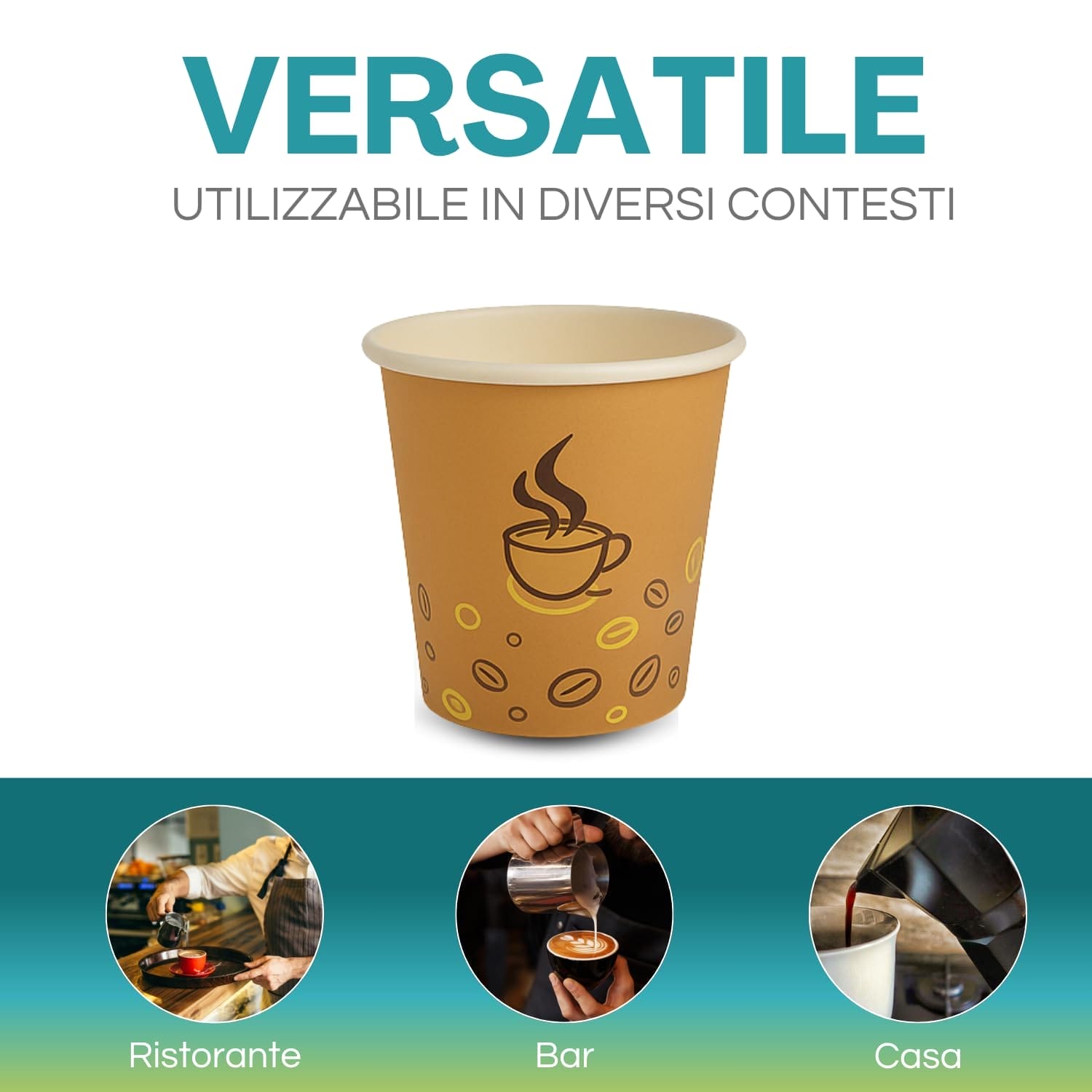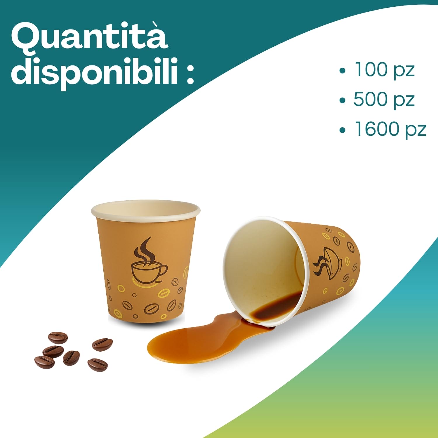 I bicchieri da 90ml in carta, di colore Avana con Grafica Chicco di Caffè monouso, sono realizzati in cartoncino di pura cellulosa di altissima qualità, adatti per bevande calde ma anche fredde.