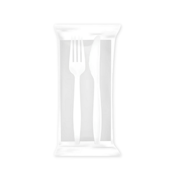- 500 pezzi (500 Confezioni contenenti ognuna una Forchetta un Coltello e un Tovagliolo).
