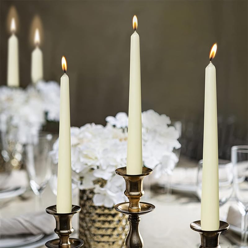 10 Candele coniche in cera paraffina di colore avorio con stoppini in cotone - Lunghezza 25cm e diametro 2,2cm, durata 8 ore - Decorazioni natalizie, per feste