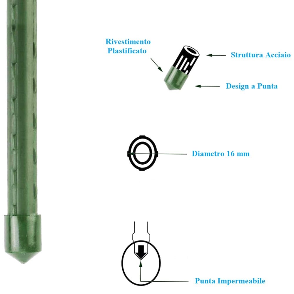 Canne in Acciaio con Rivestimento in Plastica color Verde, lunghezza pari a 180 cm, ideali per il sostegno di piante rampicanti o per reggere le piantine di pomodori così da garantire la corretta crescita proteggendole dal vento.