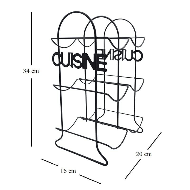Cantinetta Vino in metallo Nero, misura 20x16x34 cm con 3 ripiani da 2 slot - Portabottiglie in Metallo Decorativo per cucina, salotto