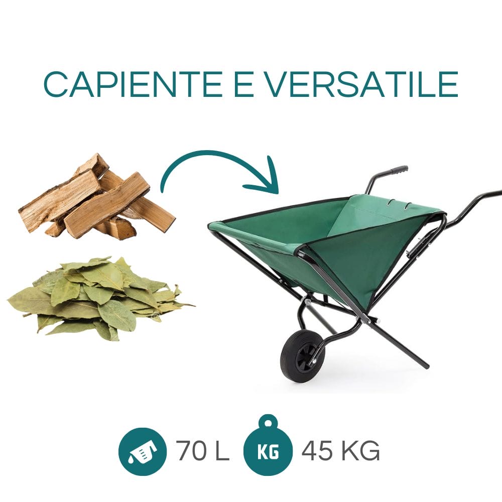 Carriola in tessuto resistente da 70 litri per giardino - Portata massima 45 Kg