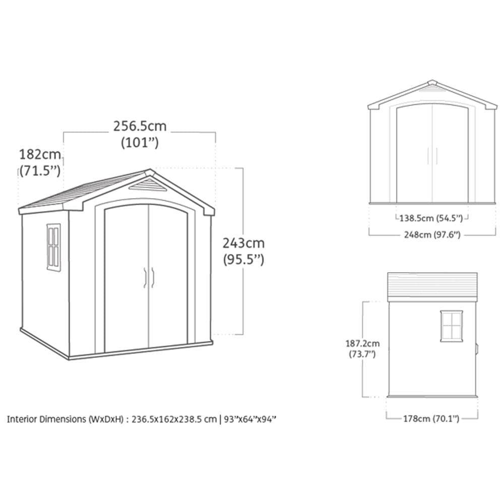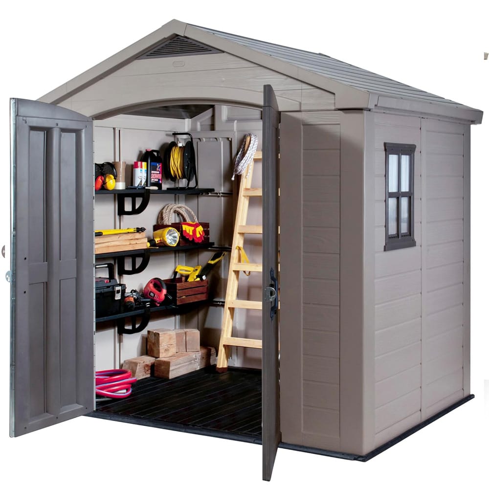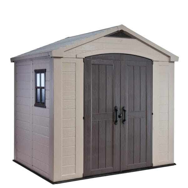 Keter Casetta da Giardino Factor 8x6, misura 256,5x182x243 cm (3,83 m²), in Resina effetto legno di colore Beige
