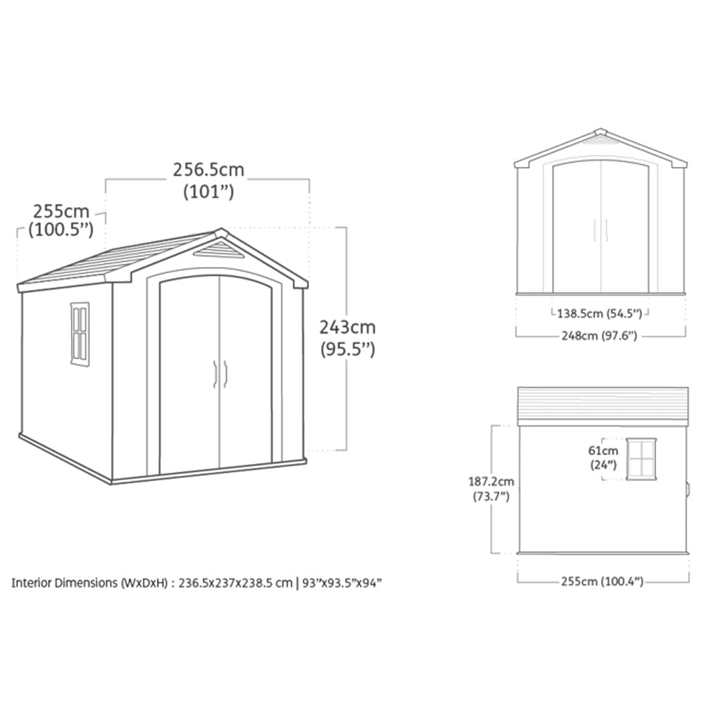 Keter Casetta da Giardino Factor 8x8, misura 256,5x255x243 cm (5,60 m²), in Resina effetto legno di colore Beige