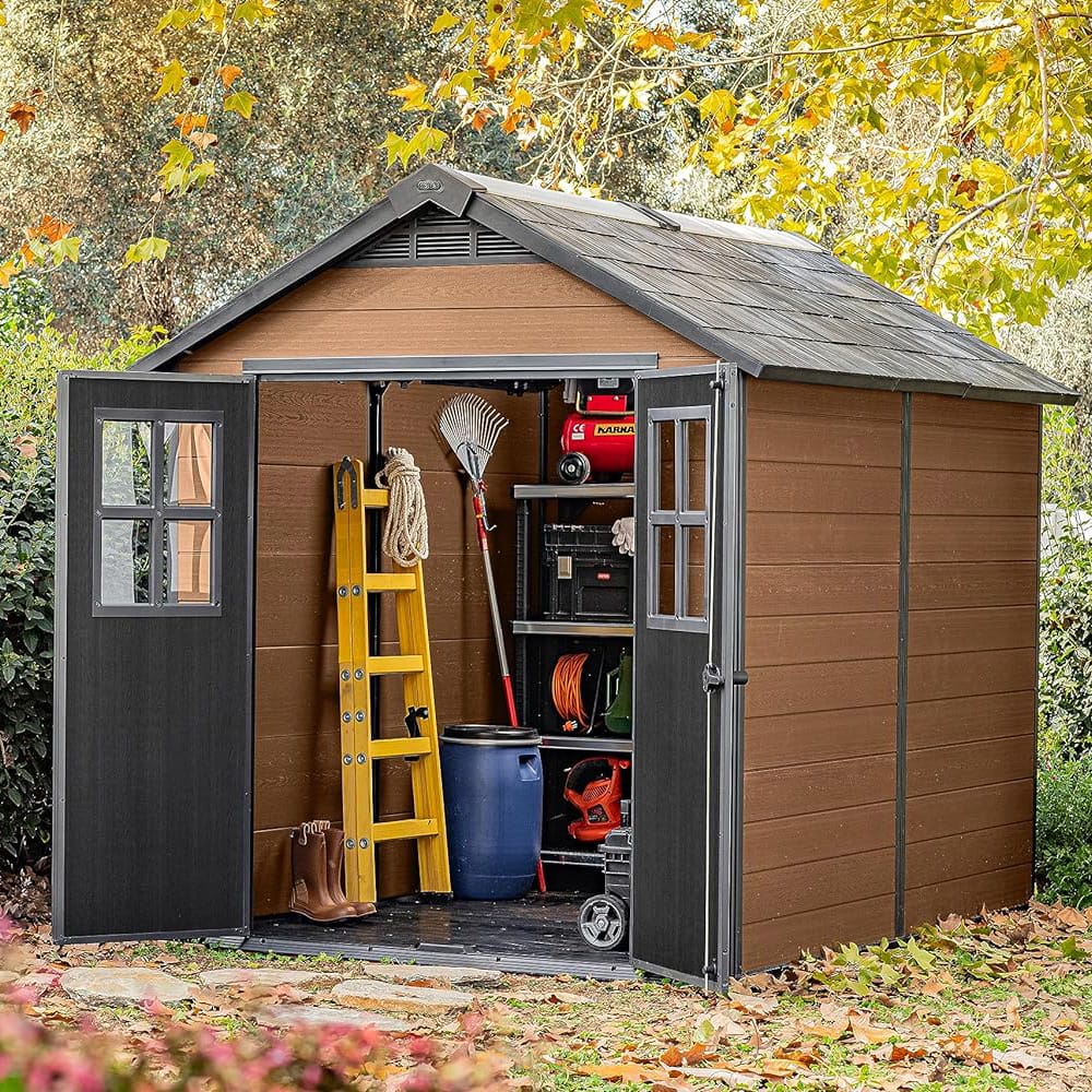 Keter Casetta da Giardino Newton - Misura 228x287x252H cm (6 m²), in Evotech effetto legno naturale di colore Marrone