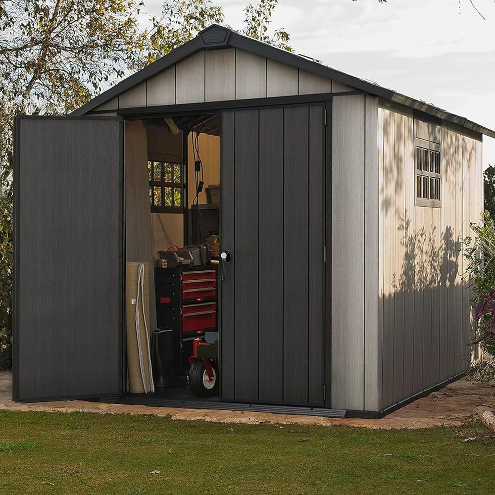 Keter Casetta da Giardino Oakland - Misura 229x287x242H cm (6 m²), in Duotech effetto legno spazzolato di colore Grigio