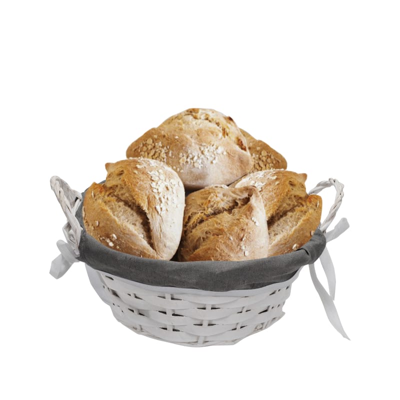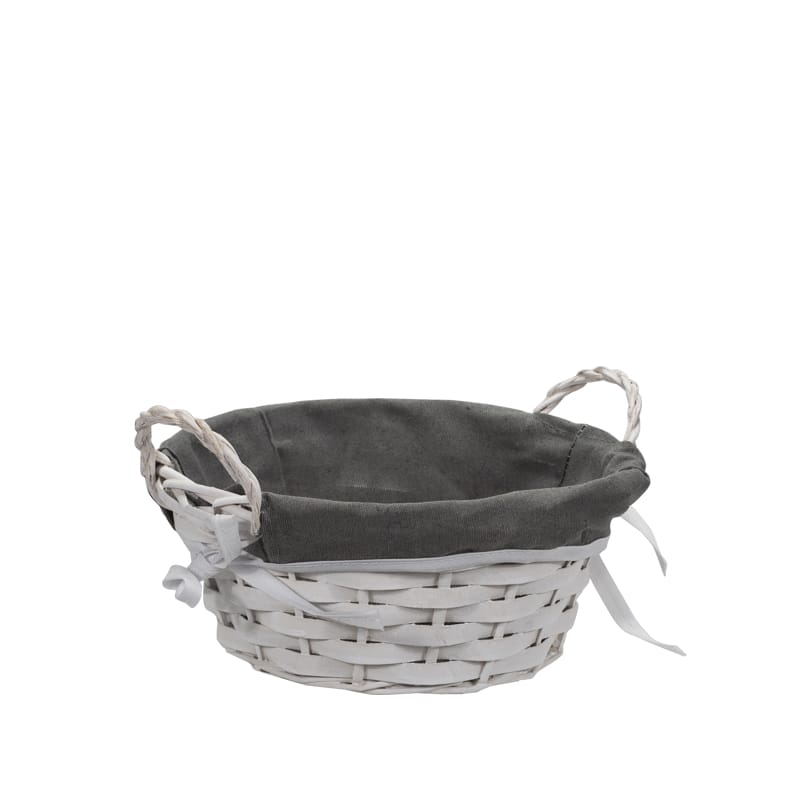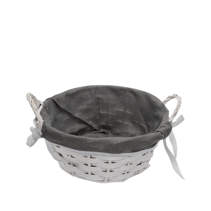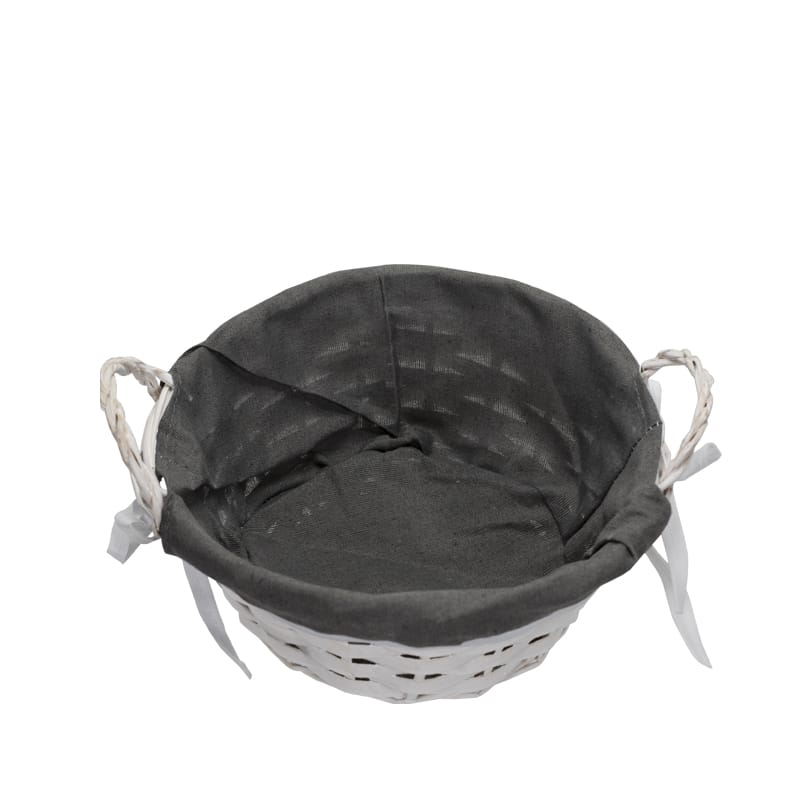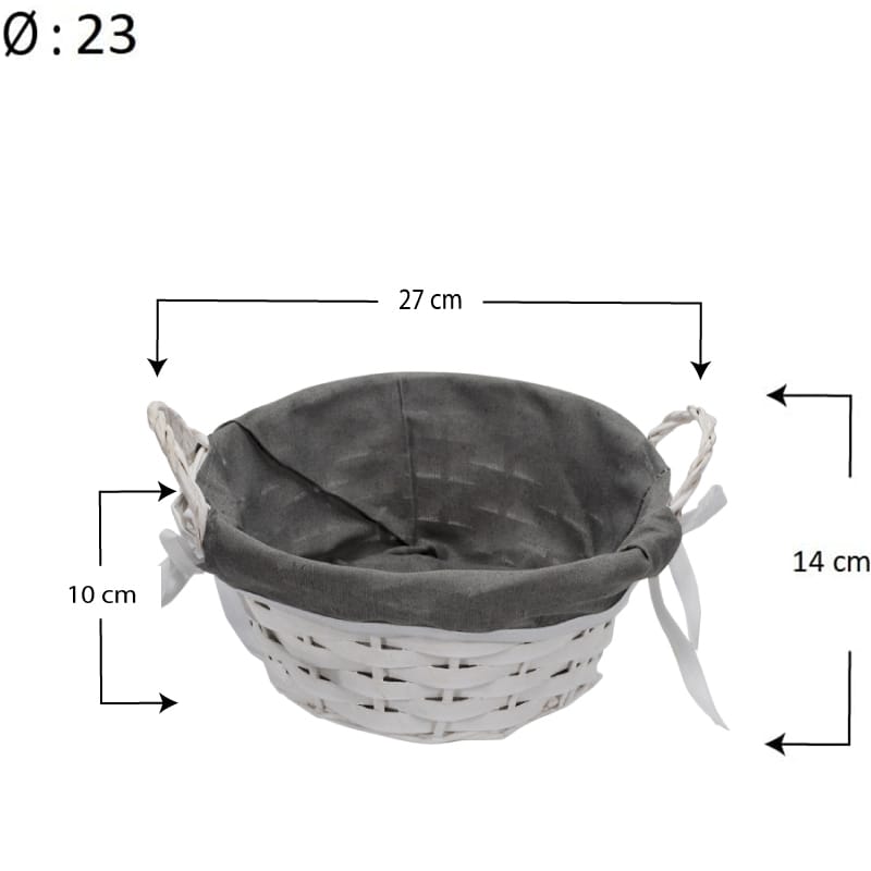 Cestino in Vimini rotondo di colore bianco - Diametro 23 cm e Altezza 10 cm - Cestino con fodera in tessuto Portaoggetti intrecciato - Portapane con maniglia