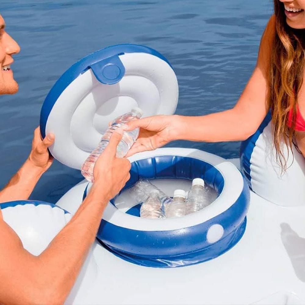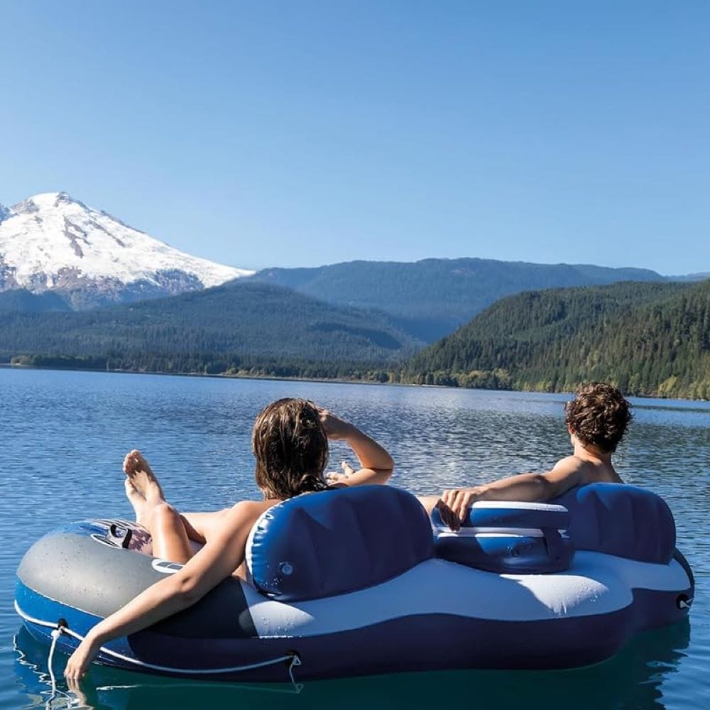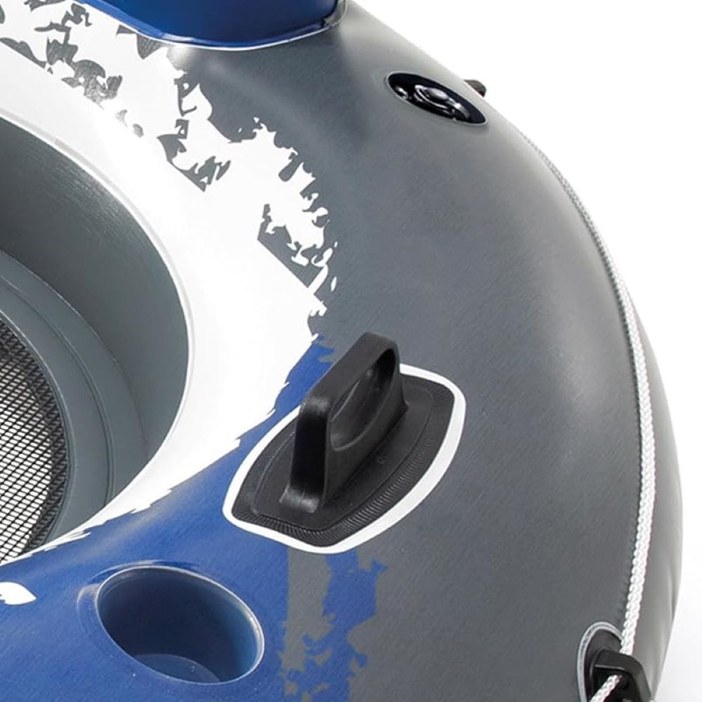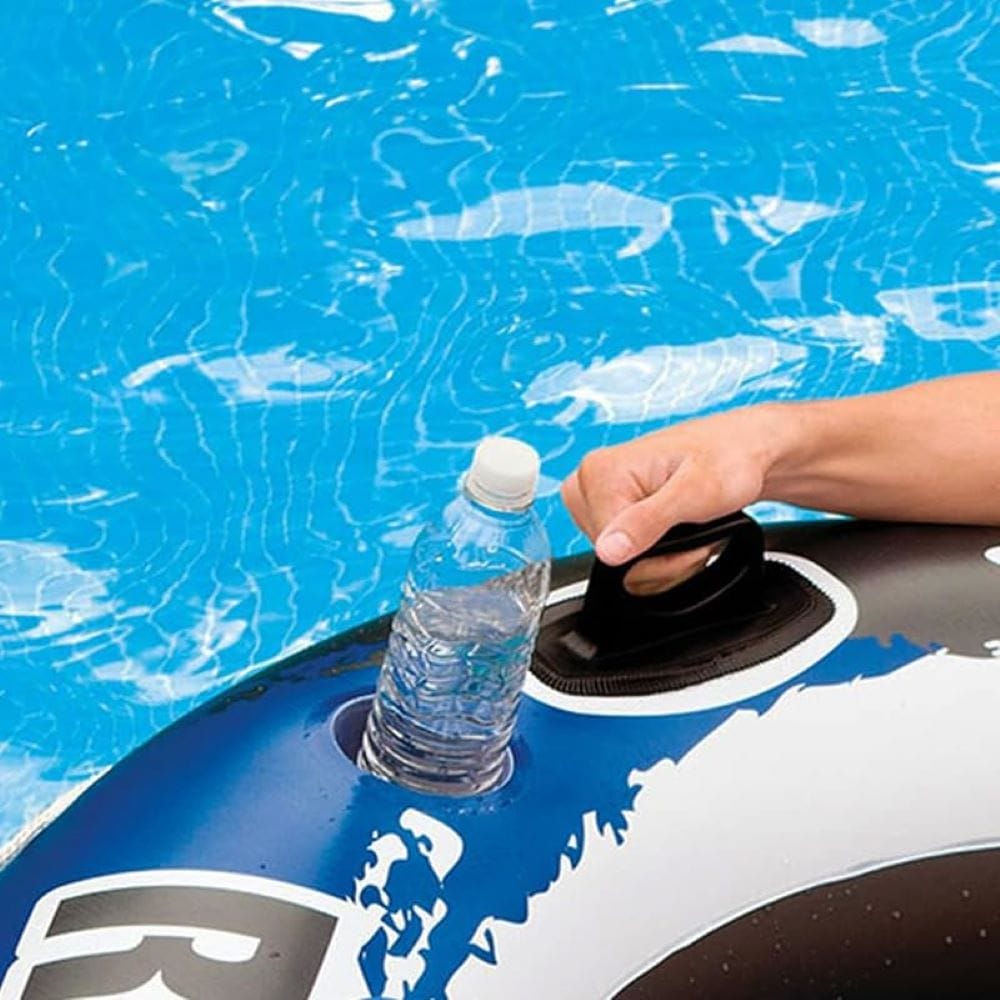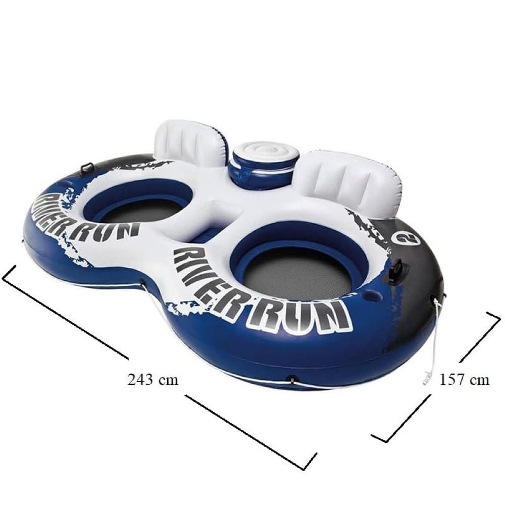 Salvagente gonfiabile doppio di colore blu, nero e bianco - Diametro 243x157 cm - Ciambella gonfiabile con fondo a rete, porta bibite e schienale