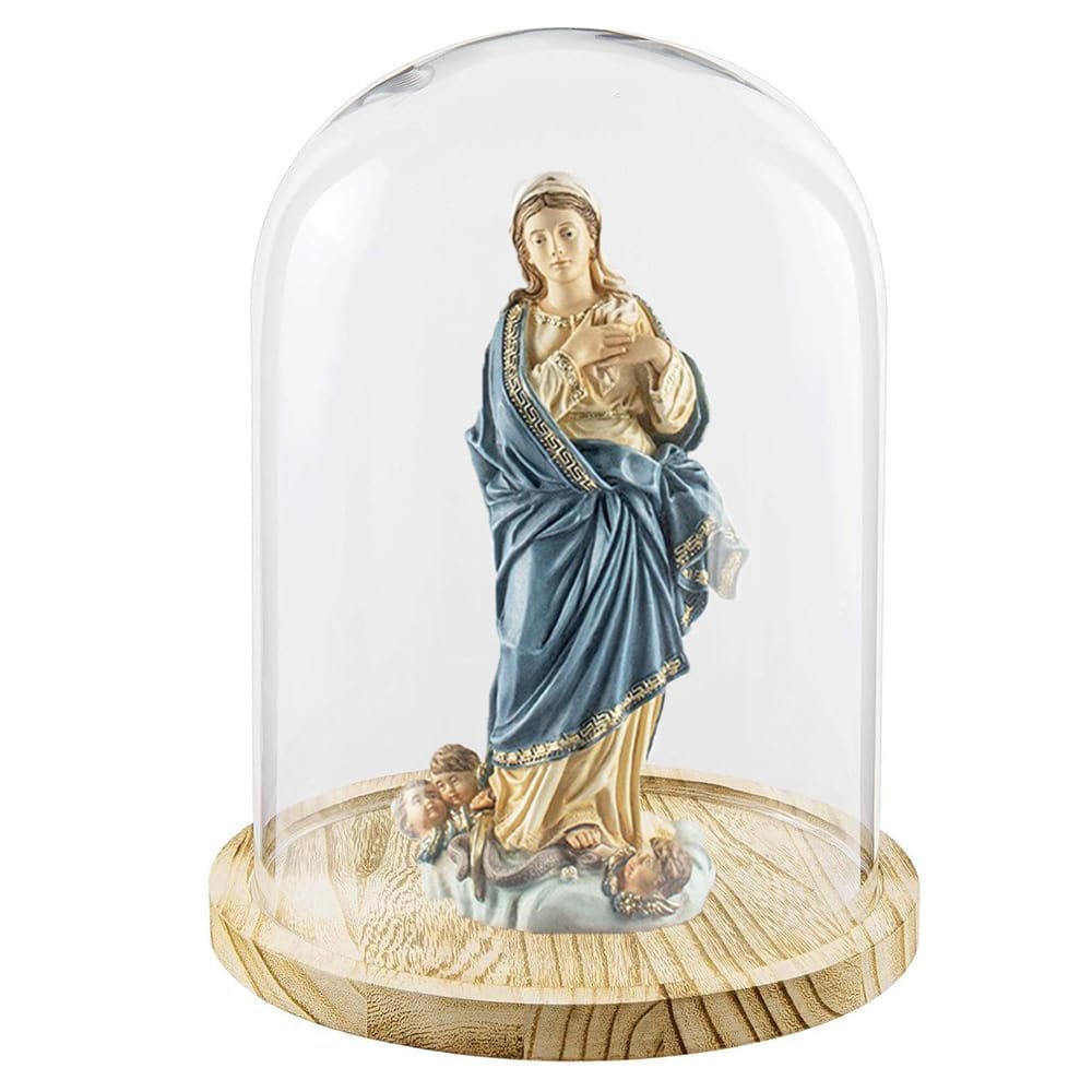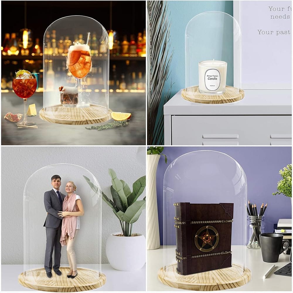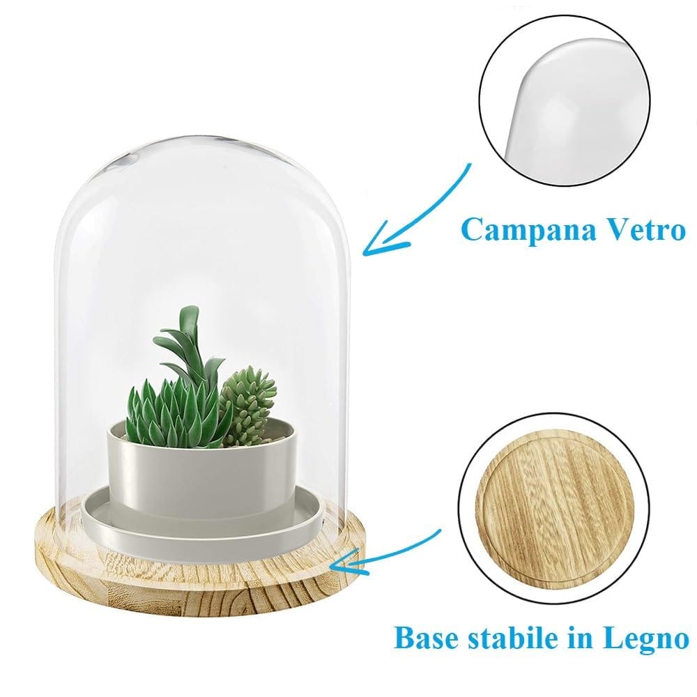 Campana di vetro con base in legno - Misura 25x36 cm - Cupola da esposizione trasparente per santi, oggetti, luci e composizioni floreali
