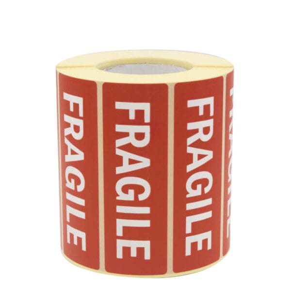 Il nostro rotolo di etichette con scritta Fragile di colore bianco su fondo rosso presenta dimensioni standard pari a 90x30 mm e anima da 4 cm. Questo articolo è indispensabile per identificare un pacco o una busta dal contenuto pregiato o delicato in modo da non far sovrapporre pesi al di sopra dello stesso.