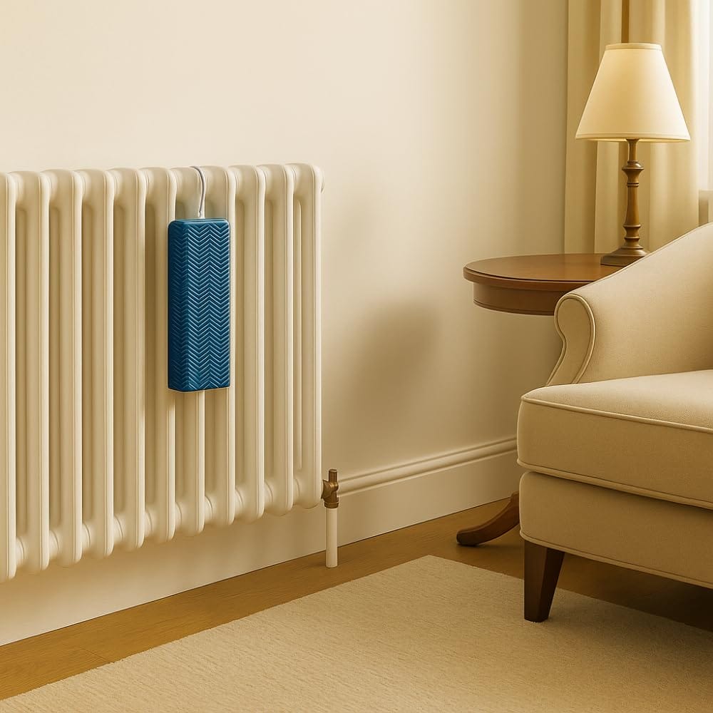 Set 4 Evaporatori d'acqua per termosifoni - mis. 8x4x18cm - Umidificatori termosifone in ceramica con motivo RIGHE A ONDA e gancio a S - Rosso, verde, giallo e blu