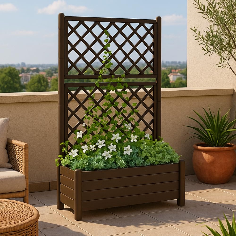 100x43x142 cm, offre ampio spazio per coltivare le tue piante e fiori preferiti. Realizzata in plastica durevole, questa fioriera è progettata per resistere agli urti e agli agenti atmosferici, garantendo una lunga durata nel tempo.