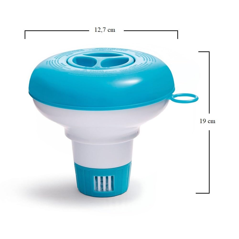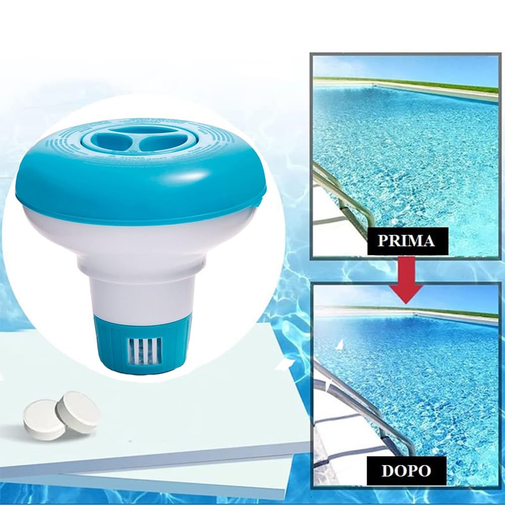 TOP QUALITY - il nostro distributore di cloro da piscina è realizzato con materiali di alta qualità che garantiscono una lunga durata e resistenza agli agenti chimici utilizzati per la disinfezione della piscina. La presenza dell’anello regolabile permette il controllo del rilascio delle sostanze chimiche. Adatto per vasche e piscine fino a 3.6 metri di diametro.