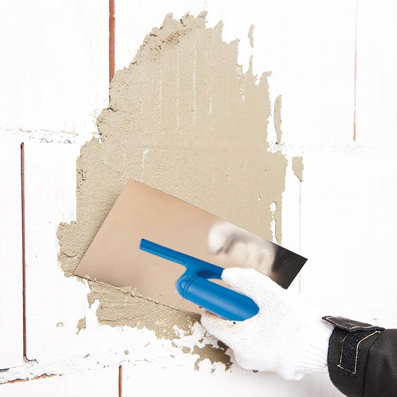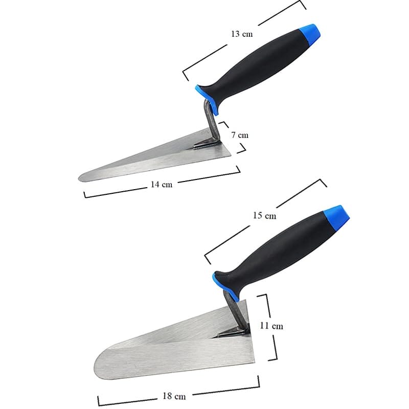 Kit 4 utensili per muratore con lame in acciaio: 1 cazzuola da 18 cm, 1 cazzuolino da 14 cm, 1 frattazzo per stucco e 1 frattazzo dentato per colla da 28x12cm