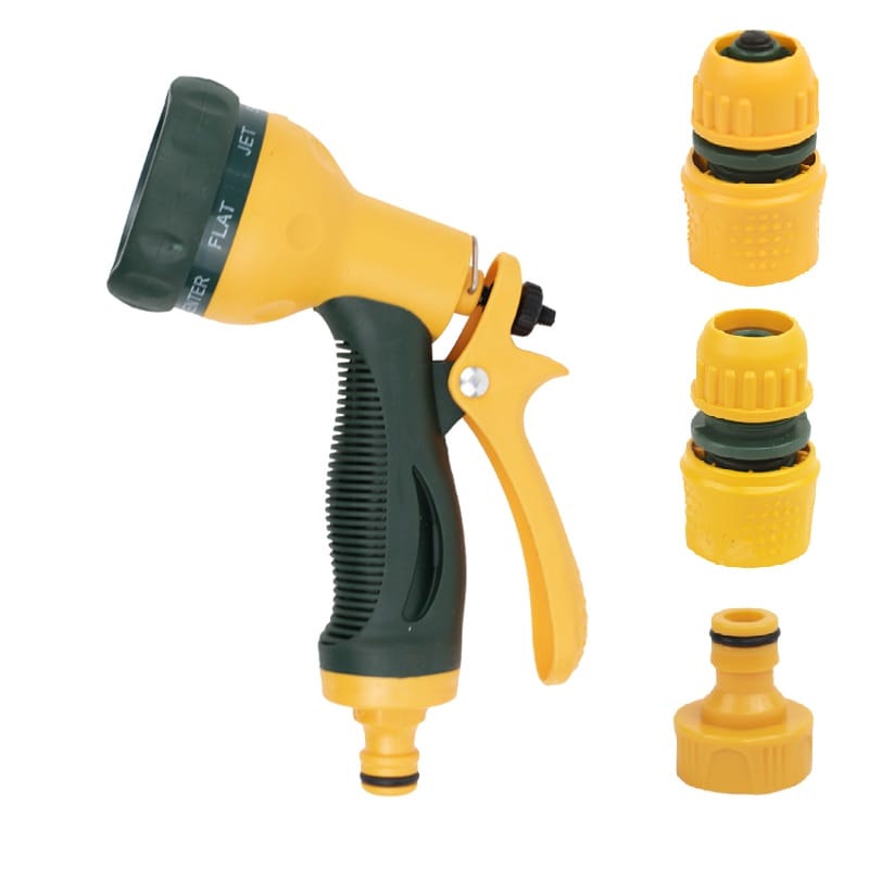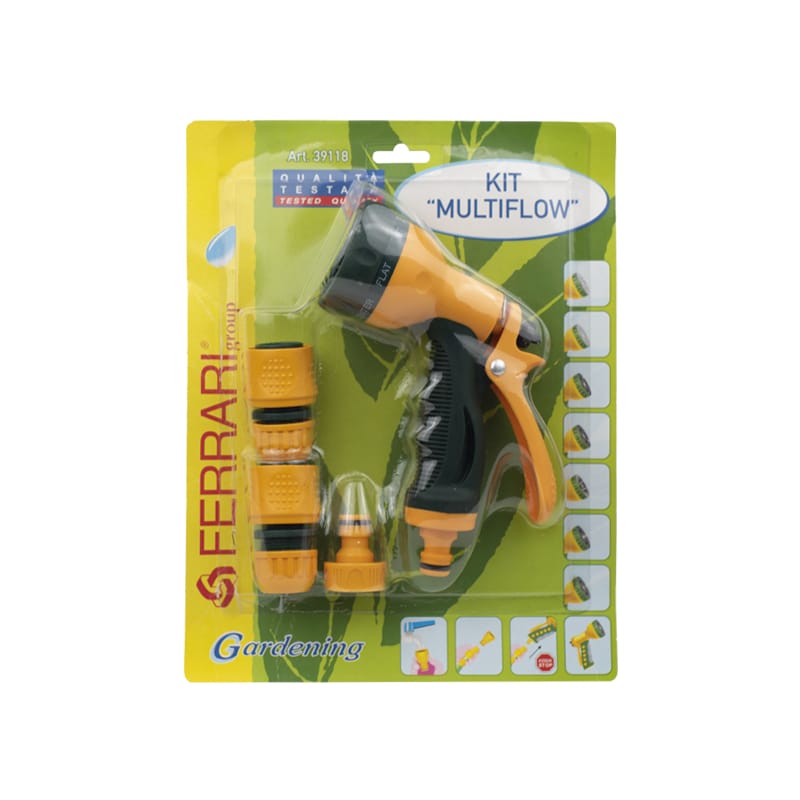 KIT Pistola irrigazione giardino a 7 funzioni di irrigazione Multiflow - Con regolazione della portata dell'acqua, acqua stop e vari raccordi