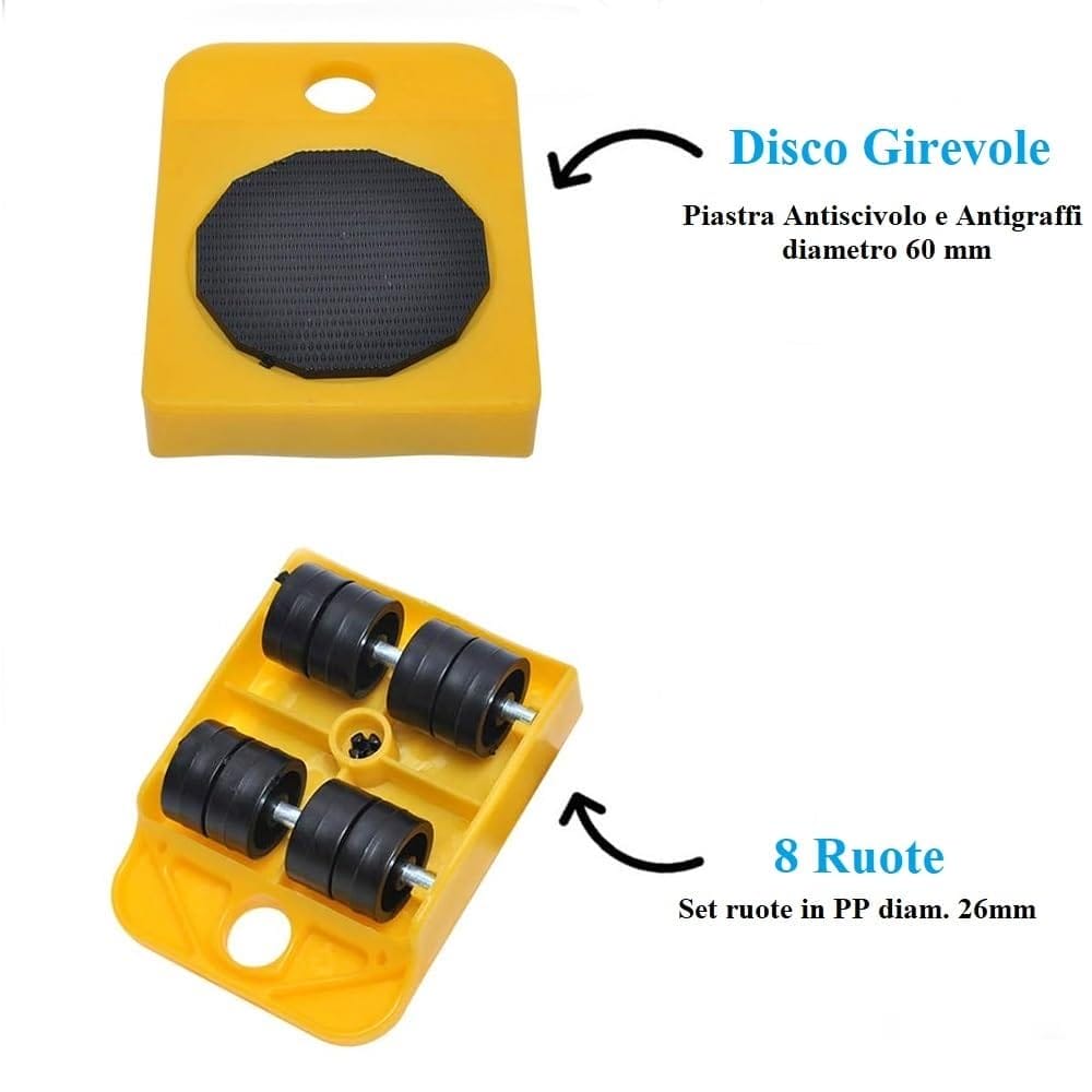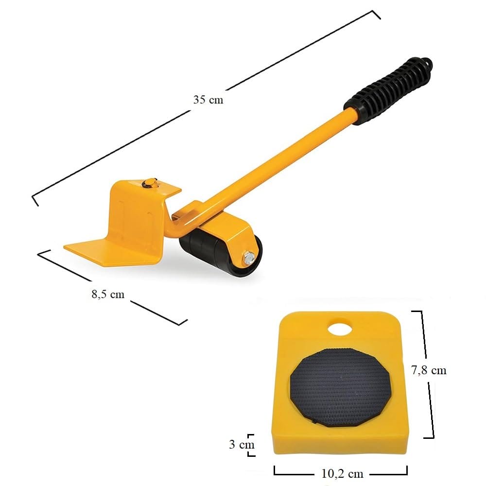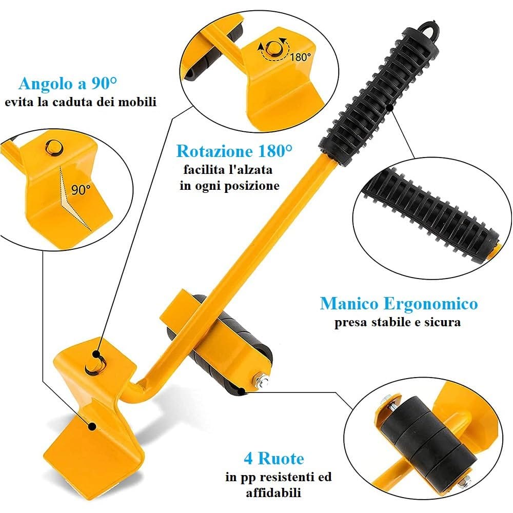 Kit sollevatore Mobili + 4 pattini per traslochi, con portata massima 150 kg - Sollevatore e sposta mobili pesanti in acciaio con manopola e rotelle e disco girevole