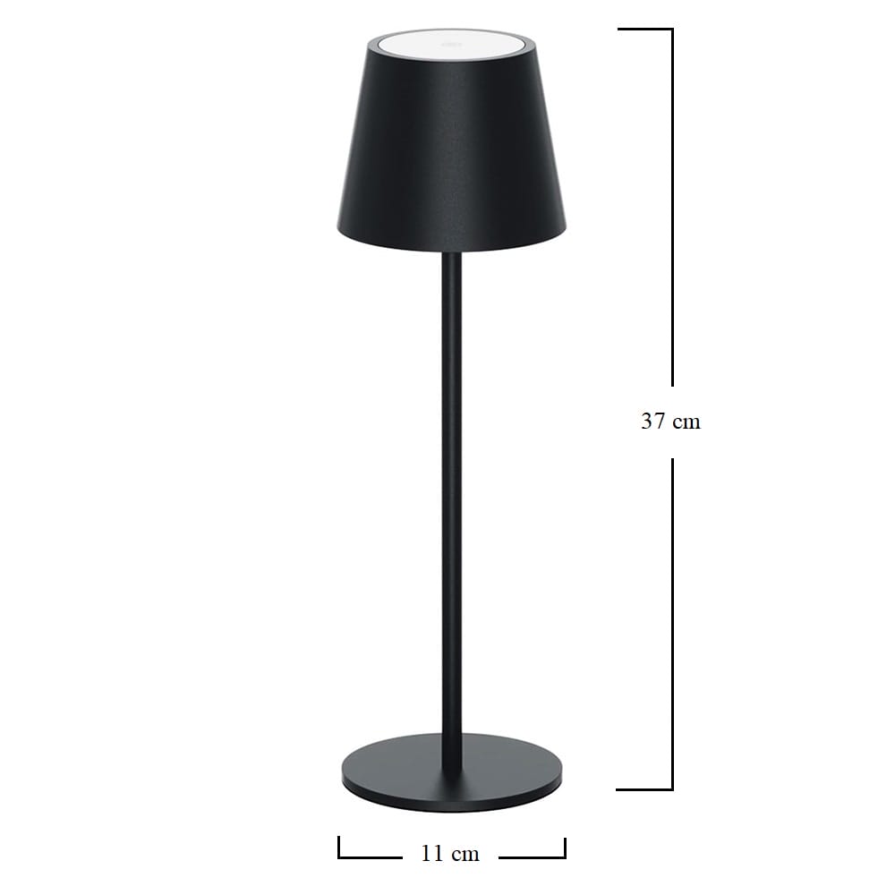 Lampada touch senza Fili con luce a LED dimmerabile in 3 Tonalità di Bianco - Misura 11x11x37cm - Colore Lampada Nera