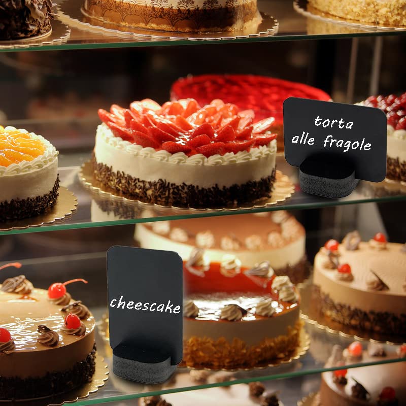 6 Lavagne segnaposto in Forex Nero mis. 7x10 cm con scrittura su doppio lato con gesso o pennarello per bar e ristoranti