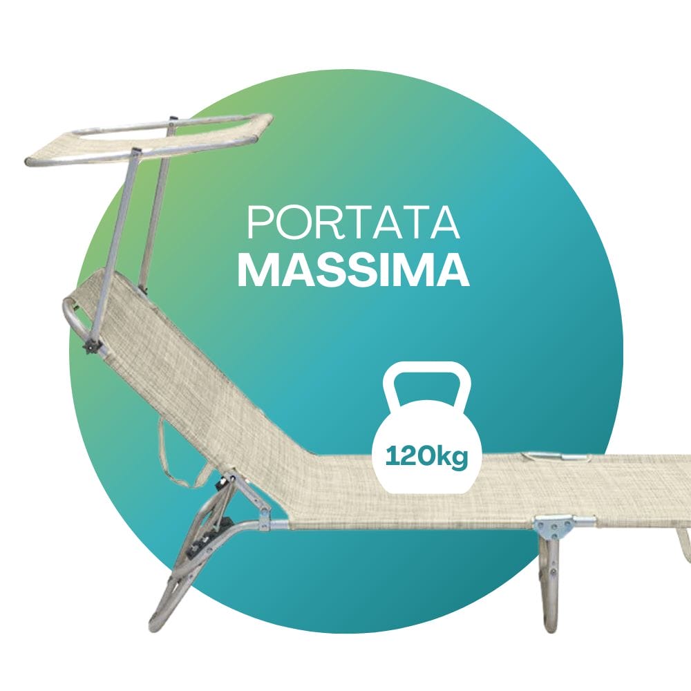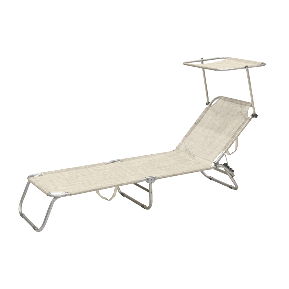 Lettino prendisole pieghevole Beige con tettuccio parasole