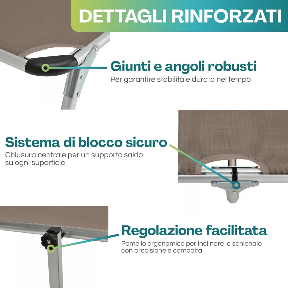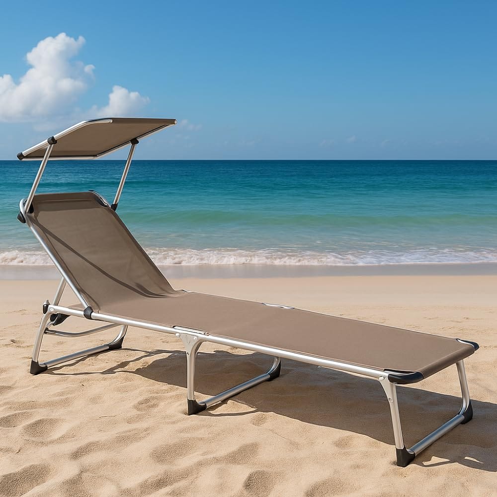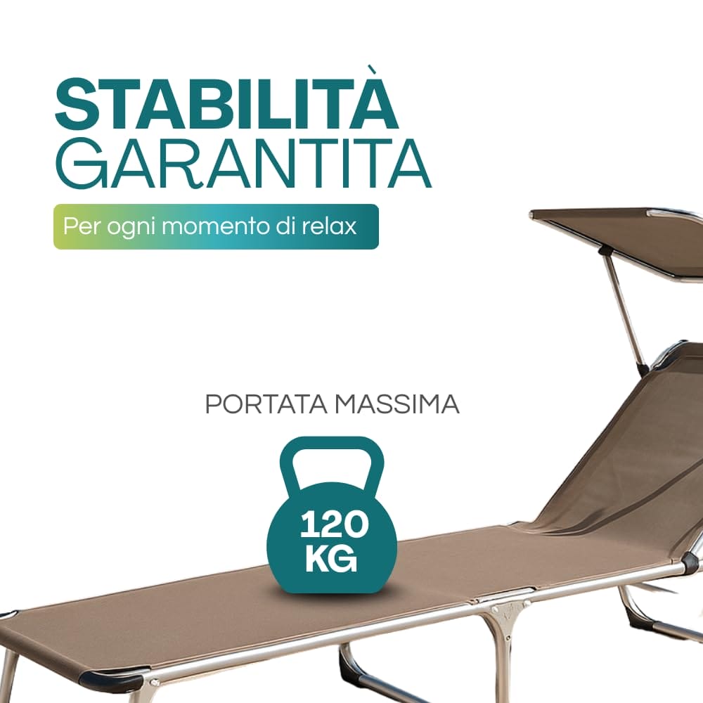 Lettino prendisole in alluminio Tortora con tetto parasole