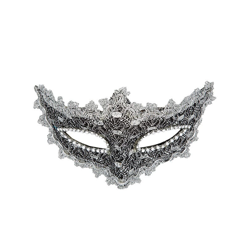 Mascherina sexy con pizzo argento e strass – Maschera veneziana