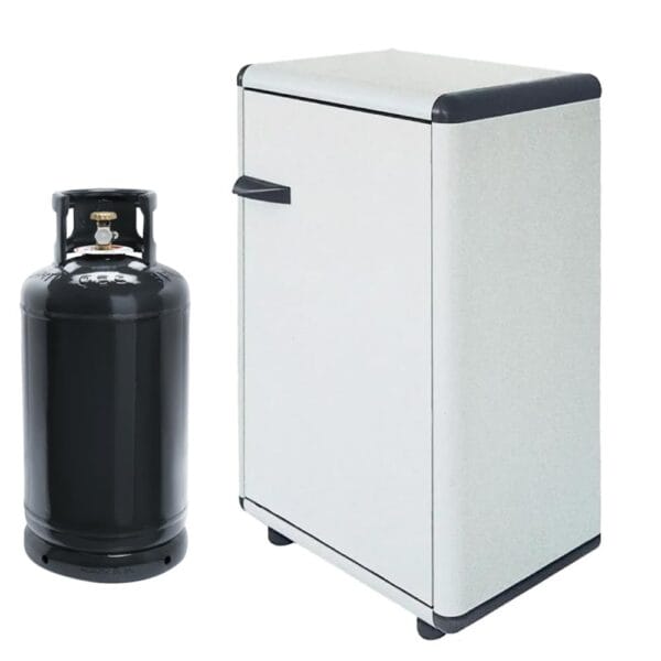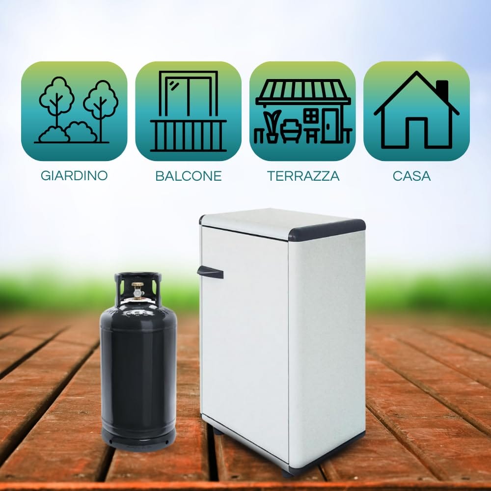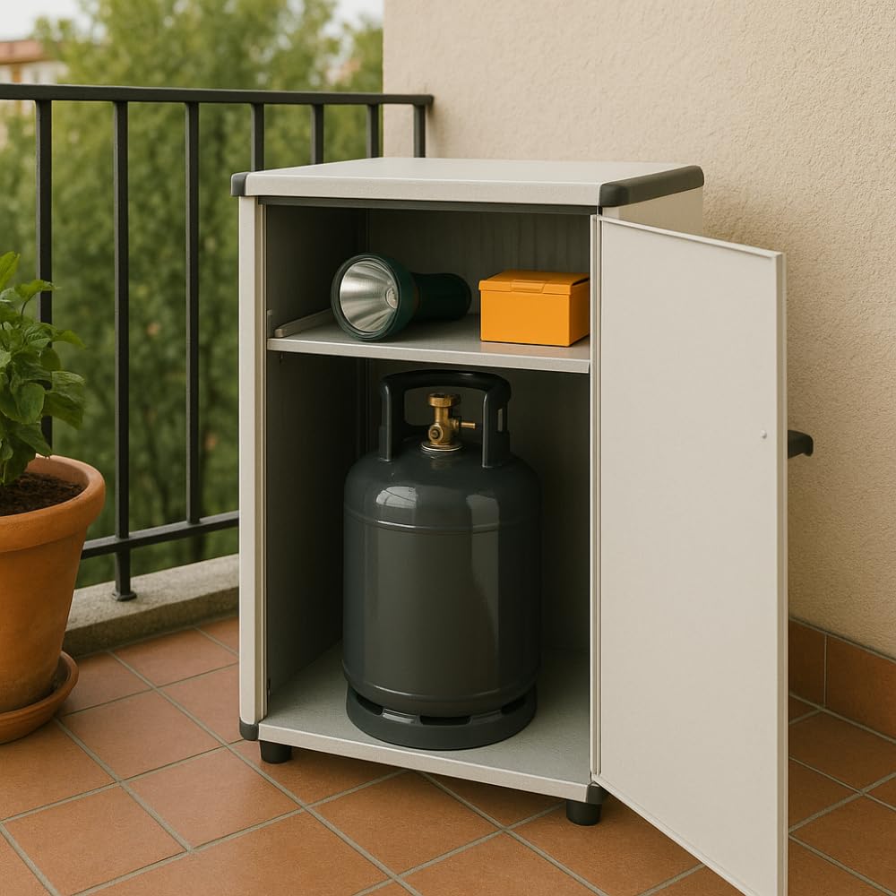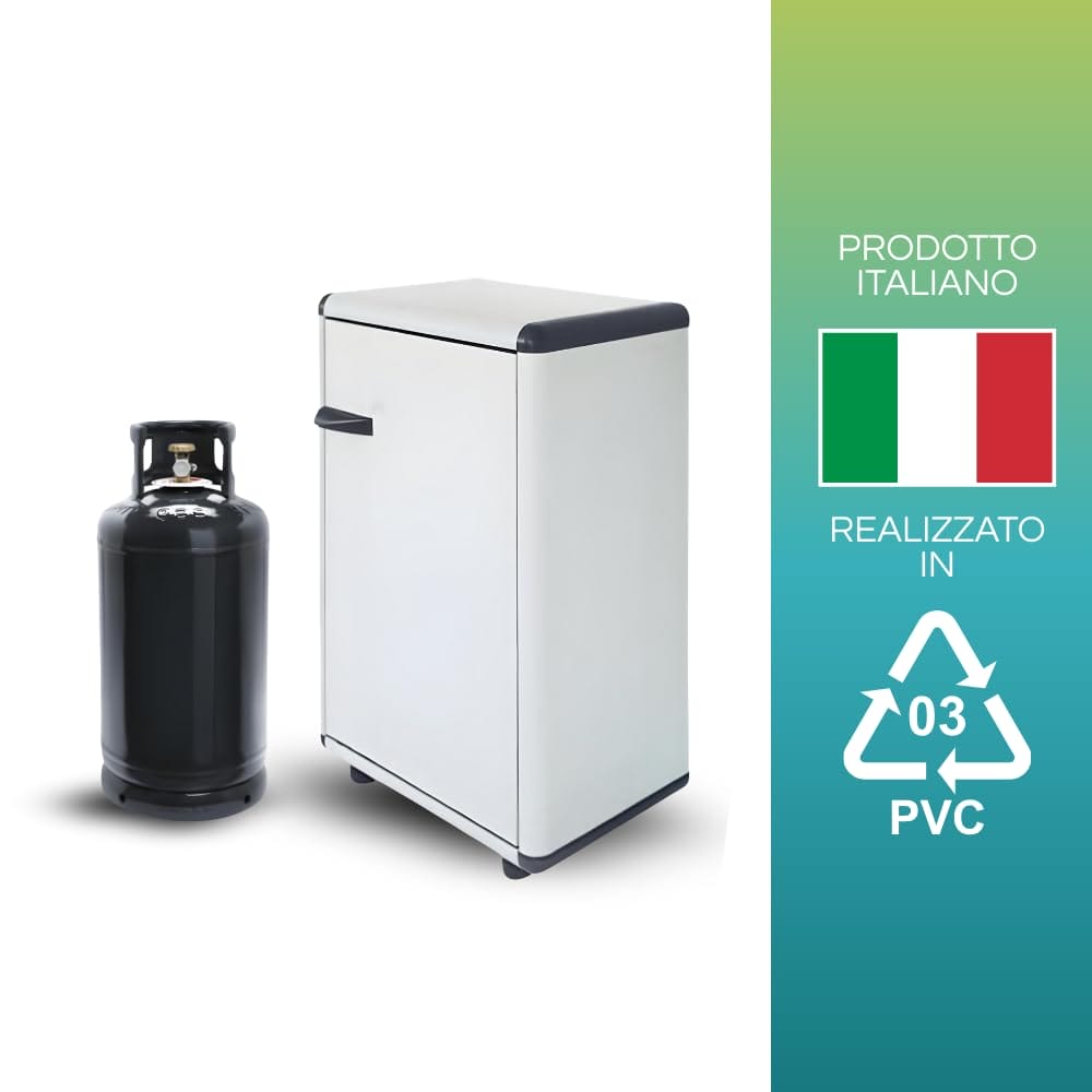 Mobile Porta Bombole Gas in PVC Grigio a 1 Anta con Maniglia e Piedi Antiscivolo - Misura 59x39x92 cm - Ideale per Esterni