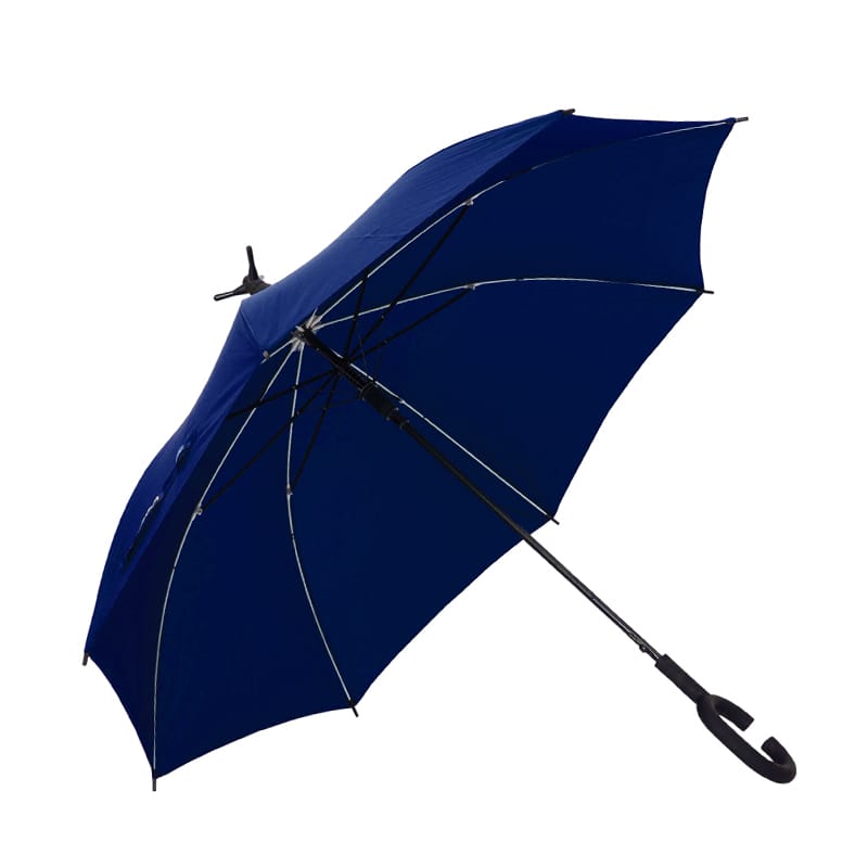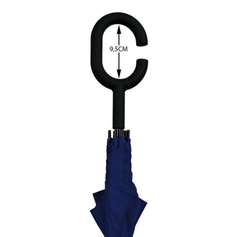 L'ombrello presenta un manico a forma di "C" che a differenza del classico manico a "J", ti permette di utilizzare le braccia al posto delle mani. Questa pratica innovazione lo rende estremamente pratico lasciandoti le mani libere per usare il telefono, portare borse o tenere in braccio il tuo bambino.