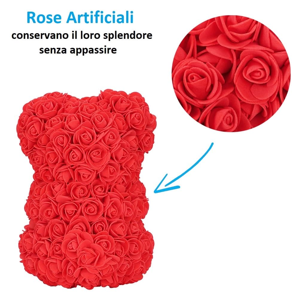 L'Orsetto di Rose Rosse è un elegante regalo perfetto per occasioni speciali come San Valentino, anniversari o compleanni. Questo affascinante orsetto è realizzato interamente con rose artificiali di un vibrante rosso, conferendo un tocco romantico e sofisticato.