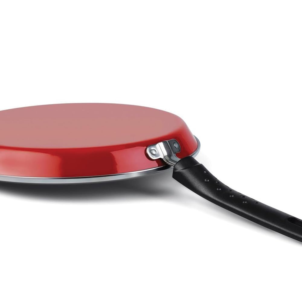 Padella per Crepes antiaderente in acciaio smaltato con manico ergonomico e rivestimento a doppio strato - Diametro 26 cm - Padella adatta per cucine a gas e induzione