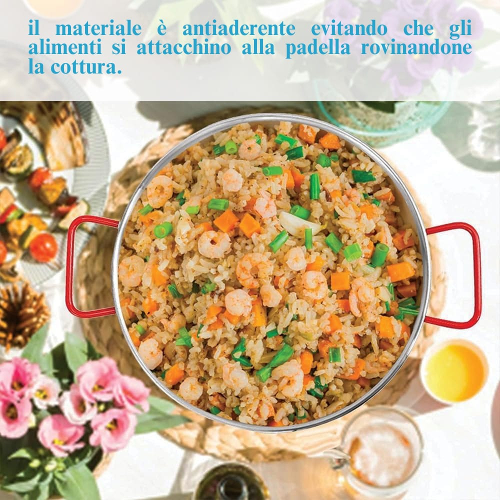 Padella per paella valenciana per 12 Porzioni, diametro 46 cm - Padella in ferro lucido con 2 manici rossi verniciati, per cucinare e servire la paella e carne