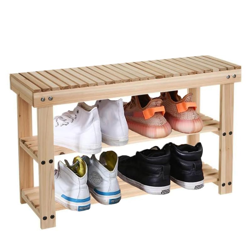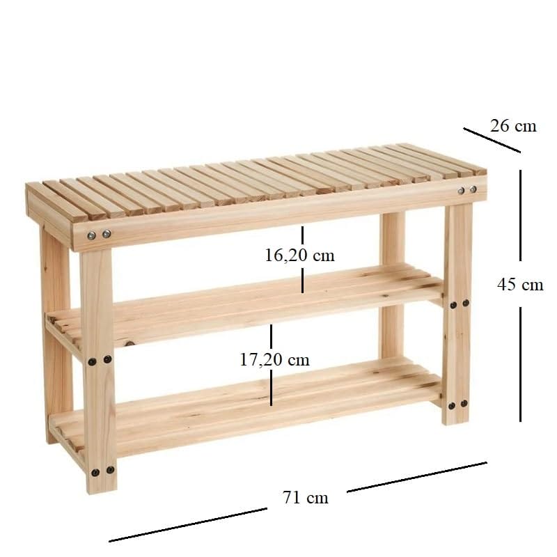 Panca Scarpiera in Legno, misura 71x26x45 cm, scaffale a 3 Livelli, Mobile Arredo - Organizzatore porta scarpe Salvaspazio per ingresso, bagno, soggiorno