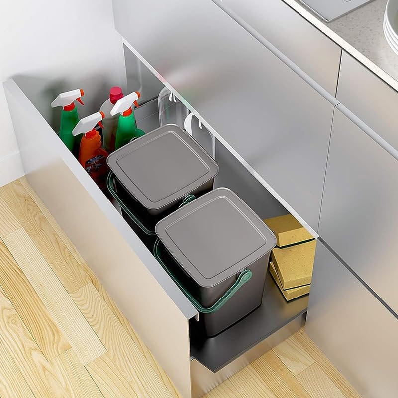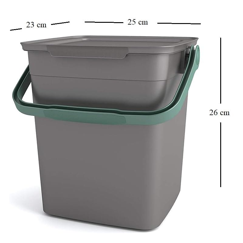 Pattumiera per compost da cucina, misura 25x23x26 cm - Capacità 9 Litri - Cestino Secchiello Antiodori per umido spazzatura