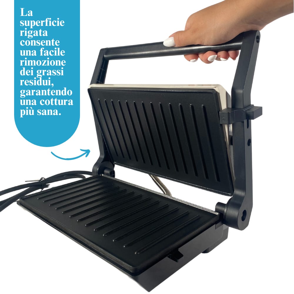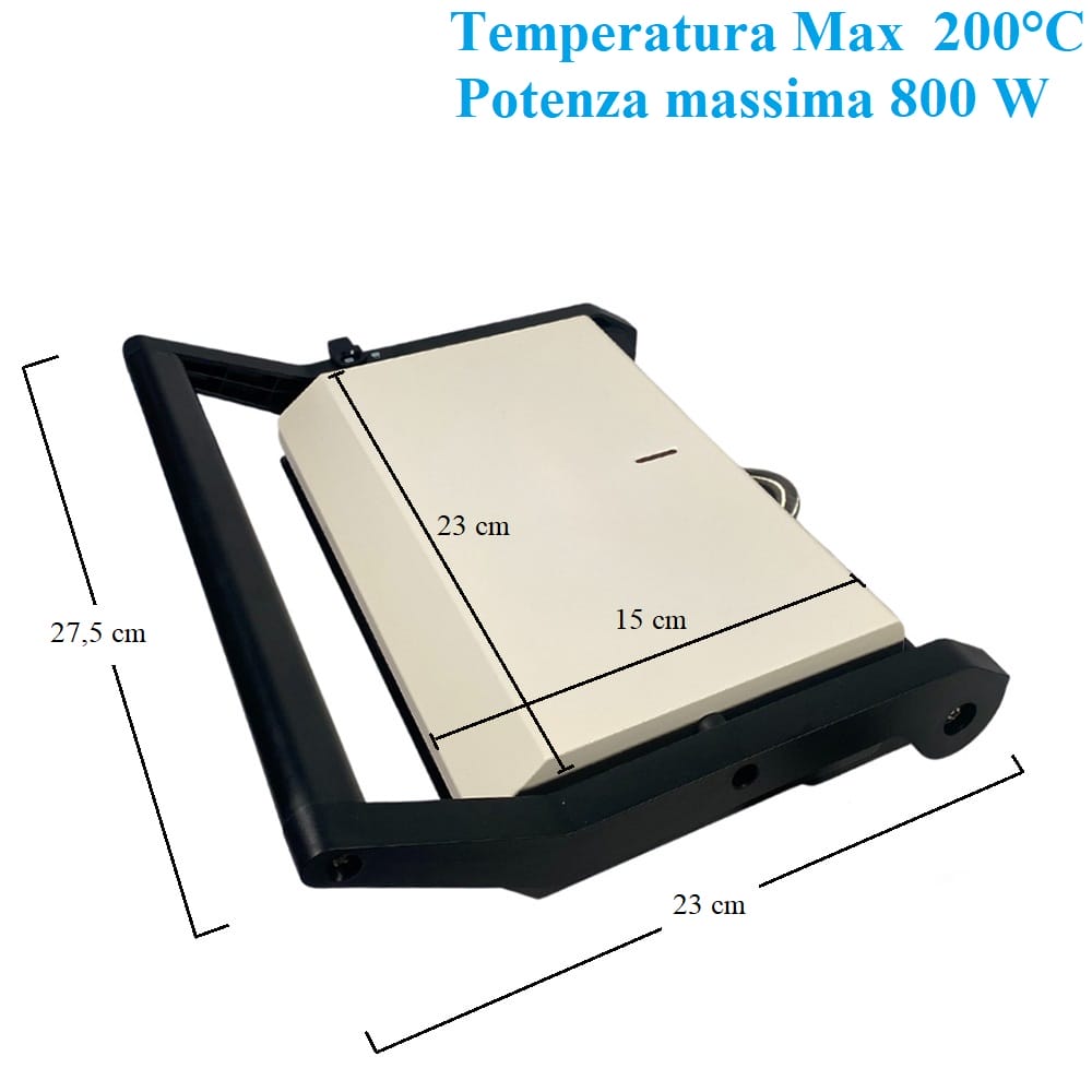 Tostiera elettrica antiaderente per panini e toast da 800 Watt - Area di cottura 23x15 cm