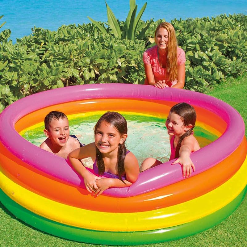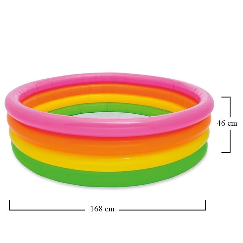Piscina gonfiabile multicolor Intex - Piscina per bambini in PVC a 4 anelli gonfiabili - Misura 168x46 Cm