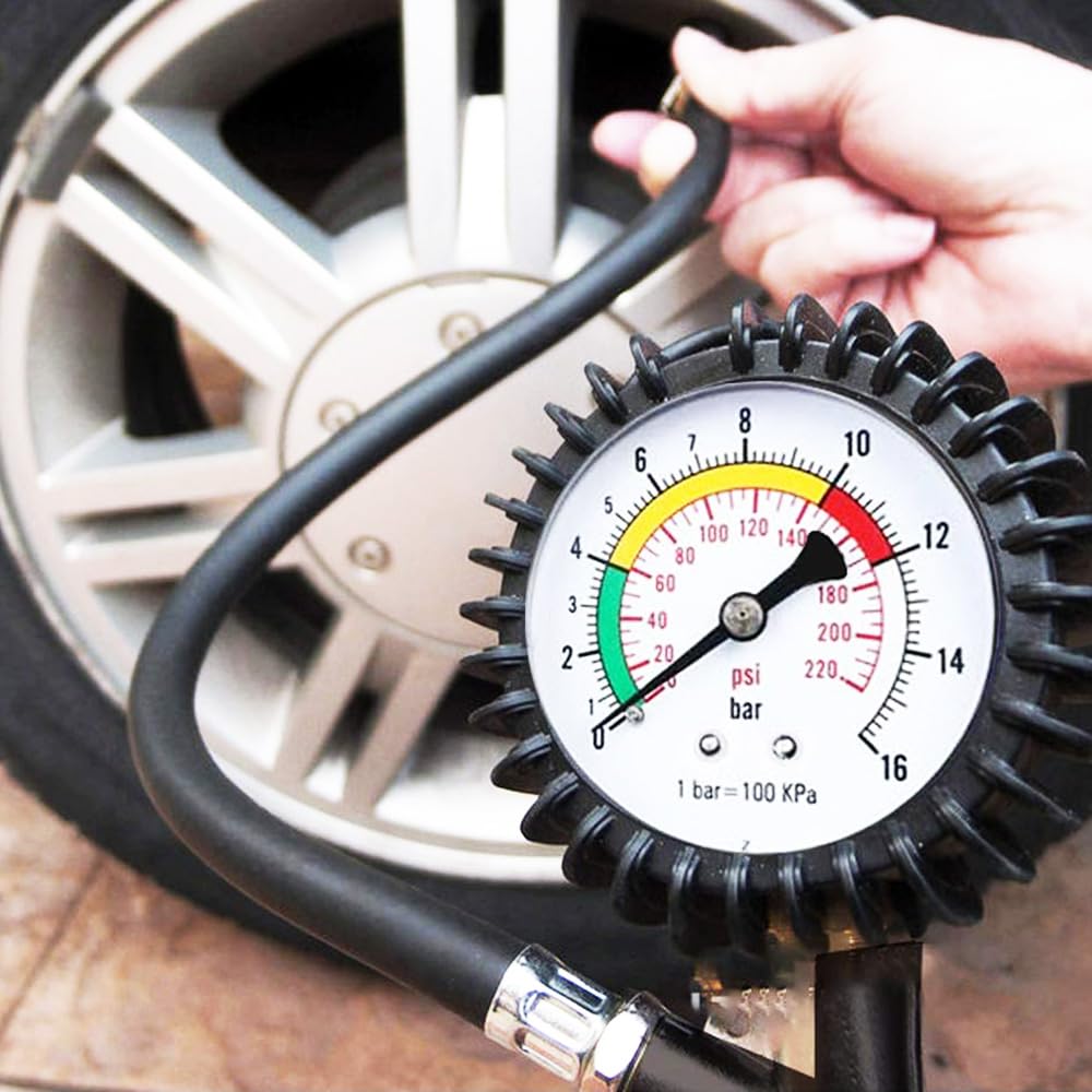 Pistola per gonfiaggio pneumatici con manometro analogico - Manometro per pressione gomme con innesto rapido e scala in BAR per auto, moto, camion e bicicletta