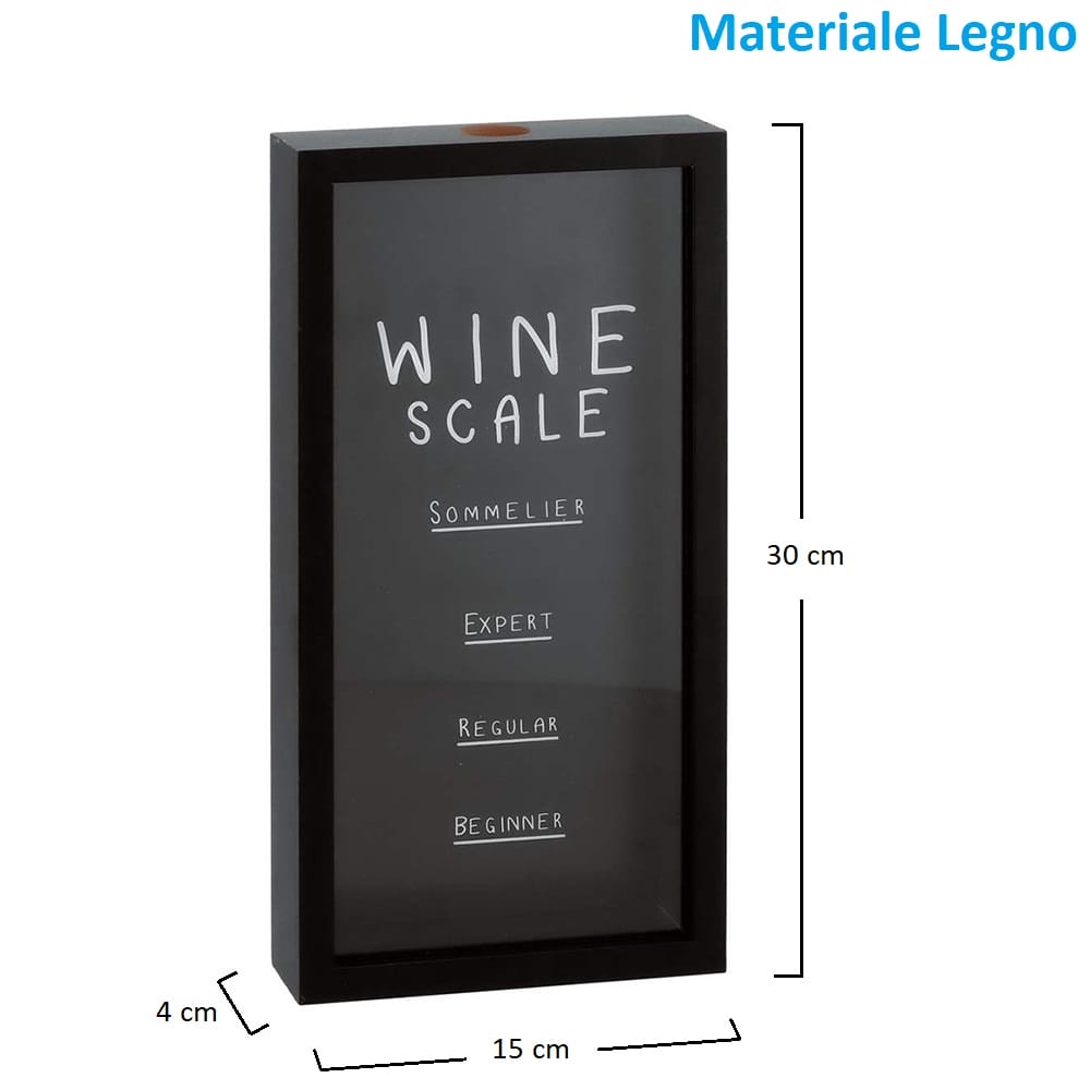 Porta tappi di sughero in MDF e Vetro - mis.15x4x30cm. - Raccogli tappi di vino o birra - Colore Nero