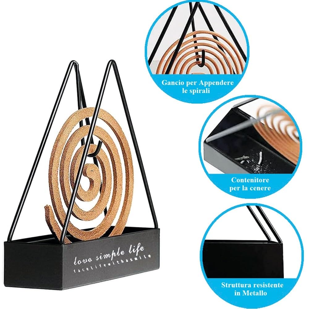 dimensioni 14x4,5x14 cm. Garantisce un utilizzo sicuro impedendo a bambini o animali domestici di entrare in contatto e rovesciare la bobina di incenso.