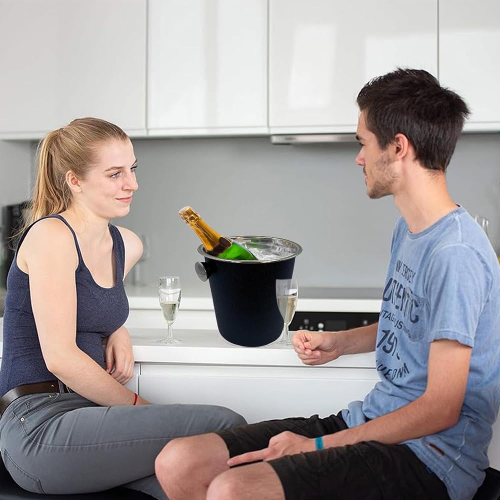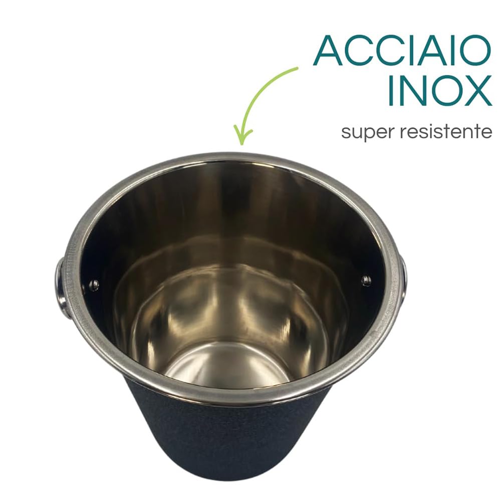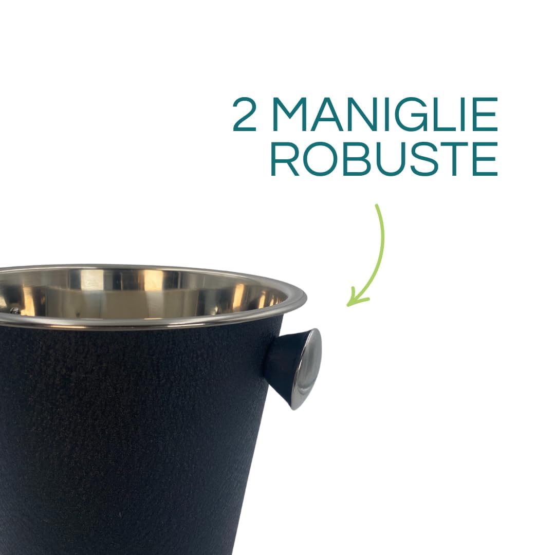 Secchiello Portaghiaccio in Acciaio Inox Nero - Dimensioni 22x21 cm e capacità da 4 Litri – Contenitore ghiaccio con Maniglie per Vino e Champagne