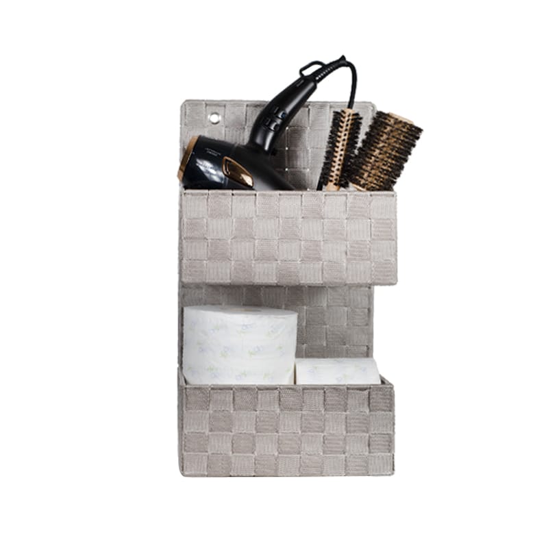 Portaoggetti da parete, mensola in tessuto portaoggetti a 2 Piani, con misura pari a 25x15x46 cm, disponibile in diversi colori, ideale per organizzare il bagno di casa tua.