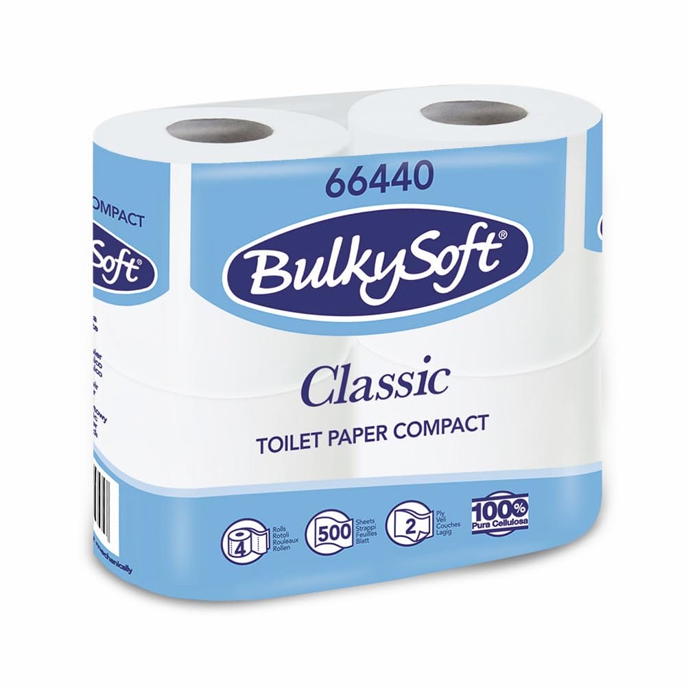 40 rotoli di carta igienica in pura cellulosa a 2 veli di colore bianco - Rotolo da 500 strappi con lunghezza 52,5 mt - 10 confezioni da 4 Pezzi