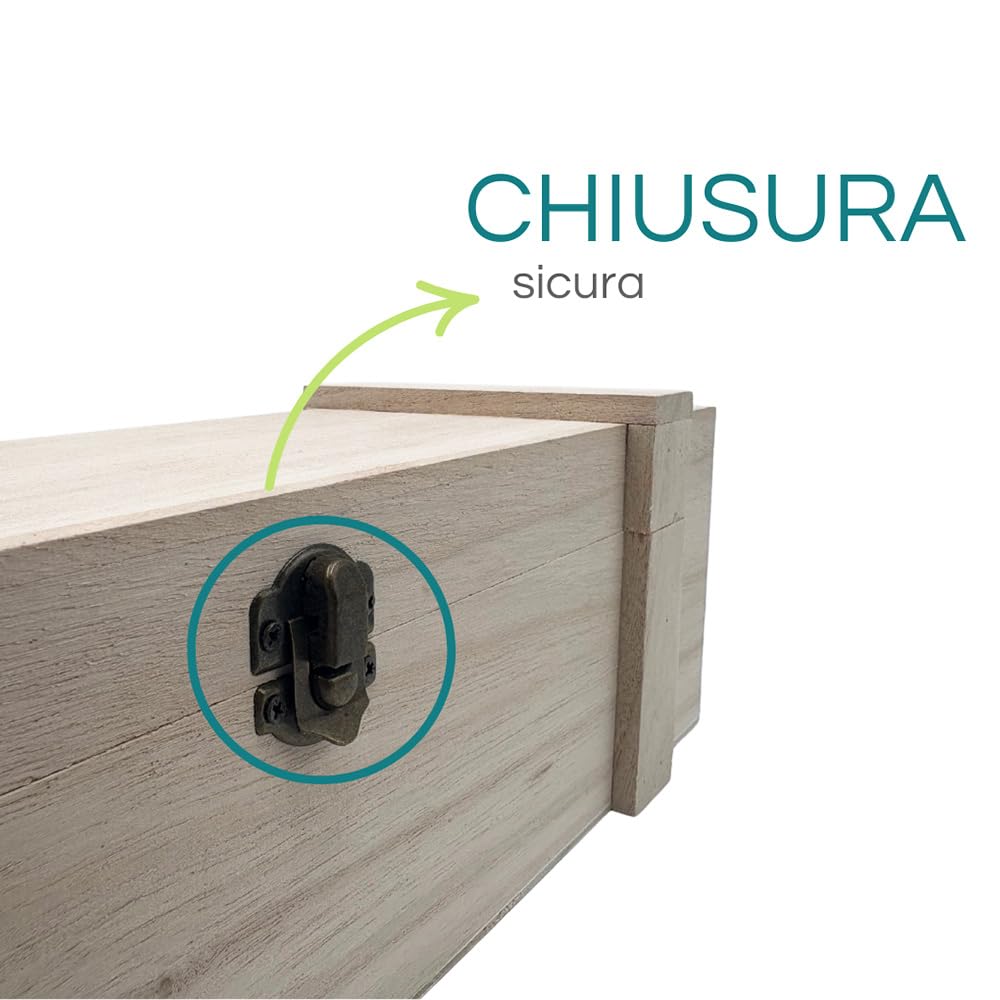 Scatola Porta Bottiglie per 1 Bottiglia di Vino in Legno Elegante e Resistente, con Coperchio e Chiusura di Sicurezza - Dimensioni: 35x10x10,5 cm