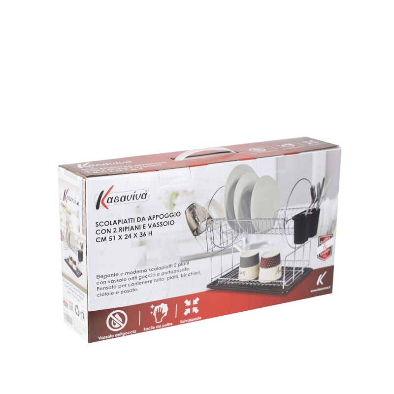 Scolapiatti da appoggio a 2 ripiani con vassoio e portaposate - Misura 51x24x36cm
