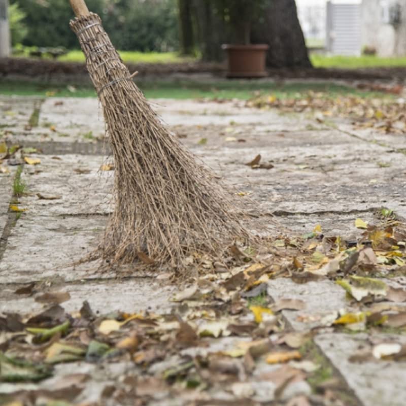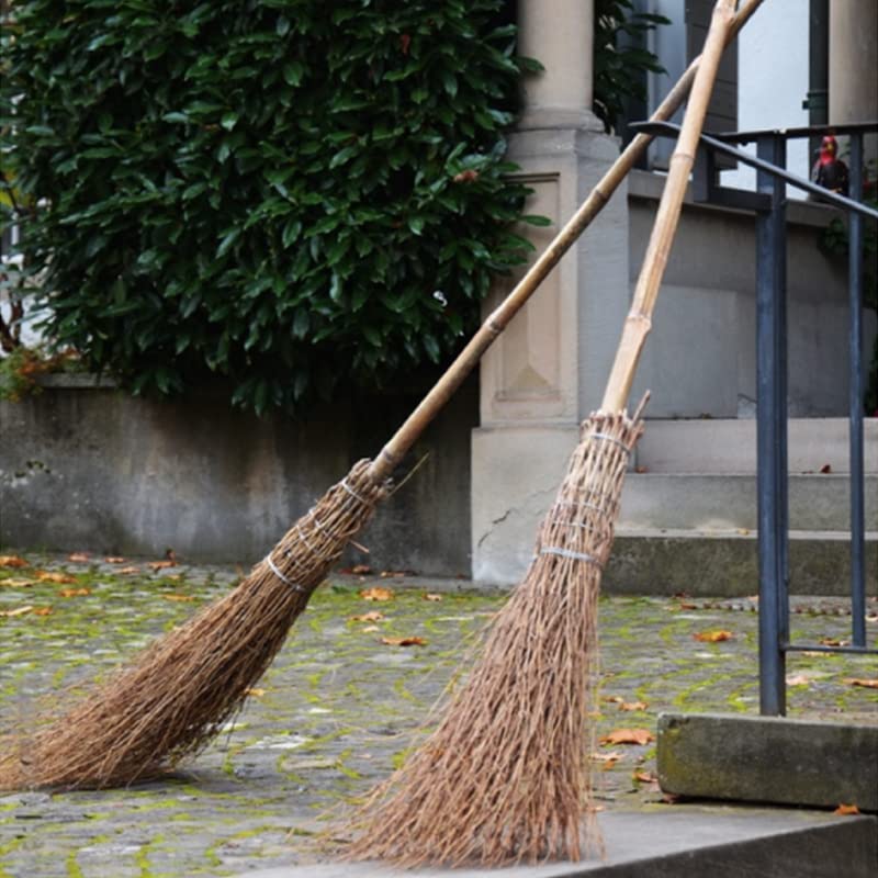 Scopa in legno naturale di bamboo resistente con manico da 142 cm e 18 setole in Bambù per pulizia giardino e strade