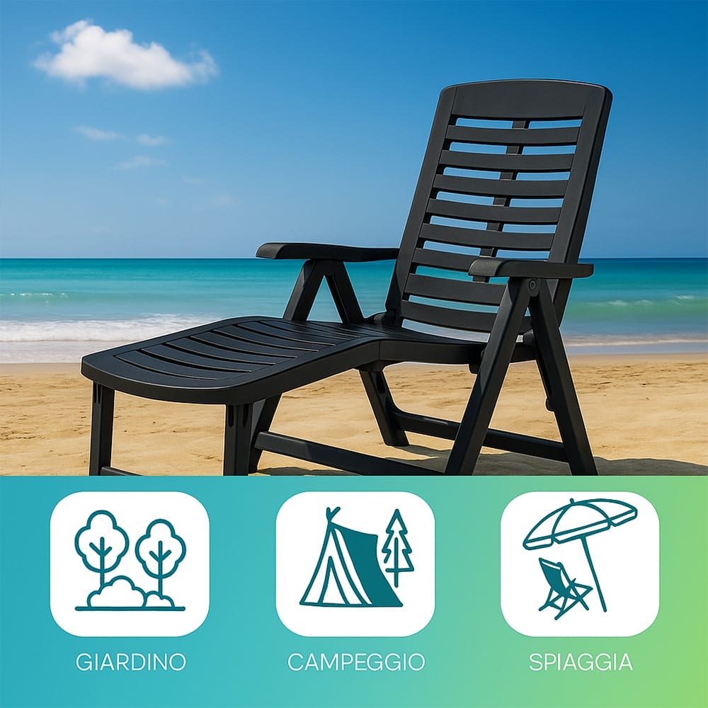 Sdraio in plastica con poggiapiedi 60x108x109 cm