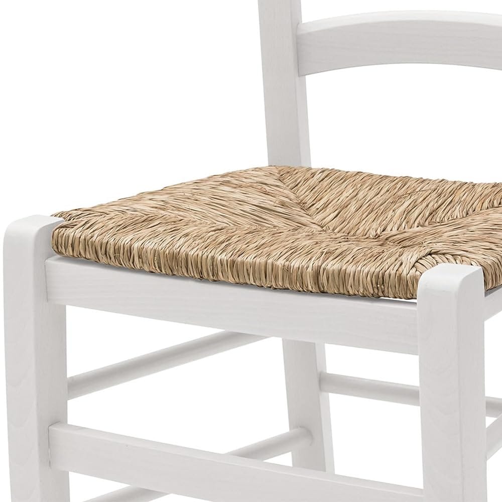 Sedia paesana impagliata Bianca in legno verniciato con seduta in paglia, dimensioni pari a 43x42x86 cm, ideali per la tua casa, esterno, per ristoranti, agriturismi ecc. Queste sedie offrono robustezza e durabilità nel tempo e il legno conferisce un aspetto elegante così da adattarsi ad ogni ambiente.