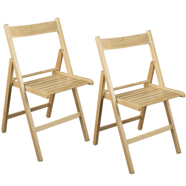 Sedie pieghevoli in legno di faggio di colore Naturale, misura pari a 42x40x78 cm, ideali per qualsiasi tipo di evento sia all’interno che all’esterno o semplicemente da utilizzare come sedie ausiliari quando si hanno ospiti a casa.