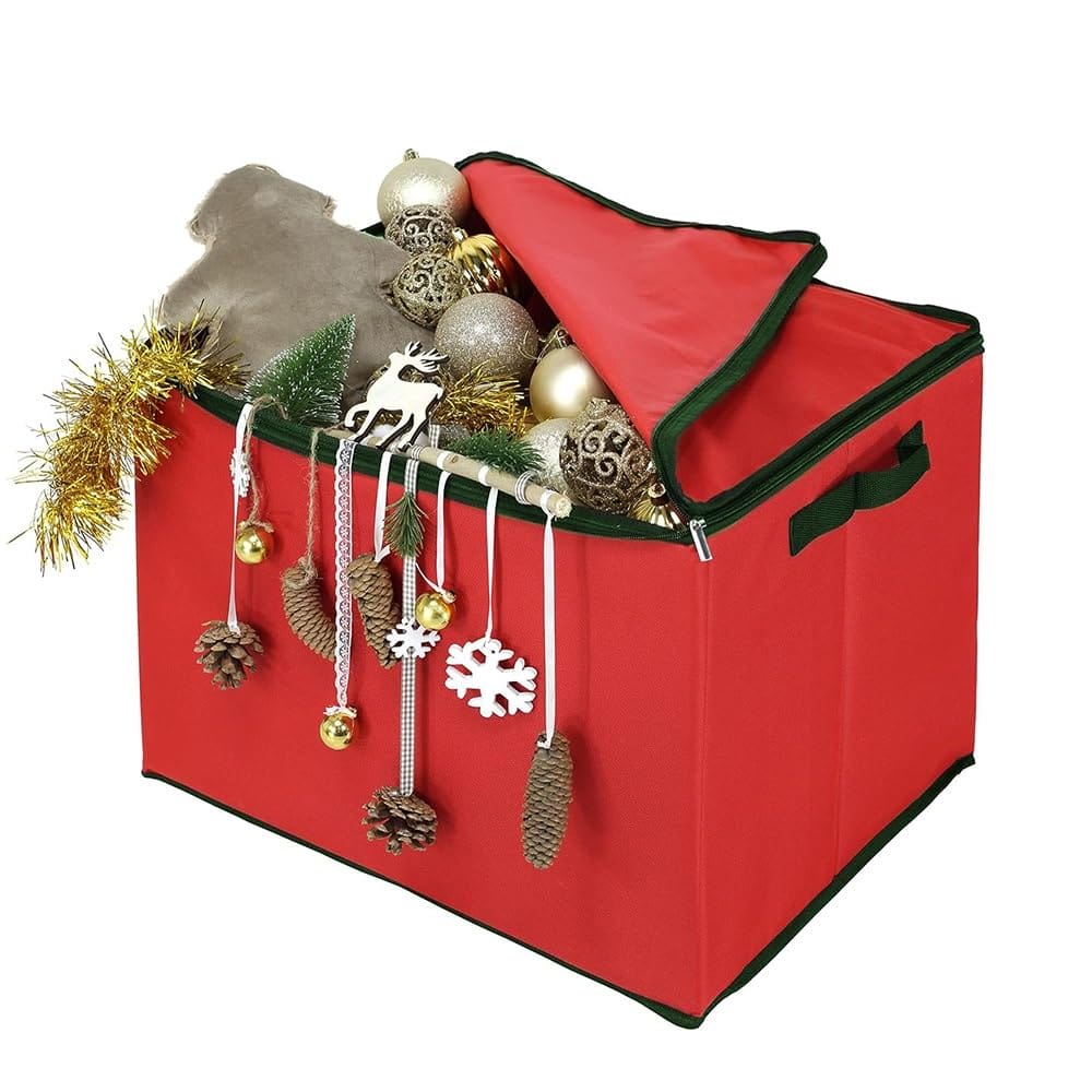 Set Custodia per albero di natale e scatola porta palline - Borse impermeabile rosse con cerniera e manici, protezione da polvere e umidità